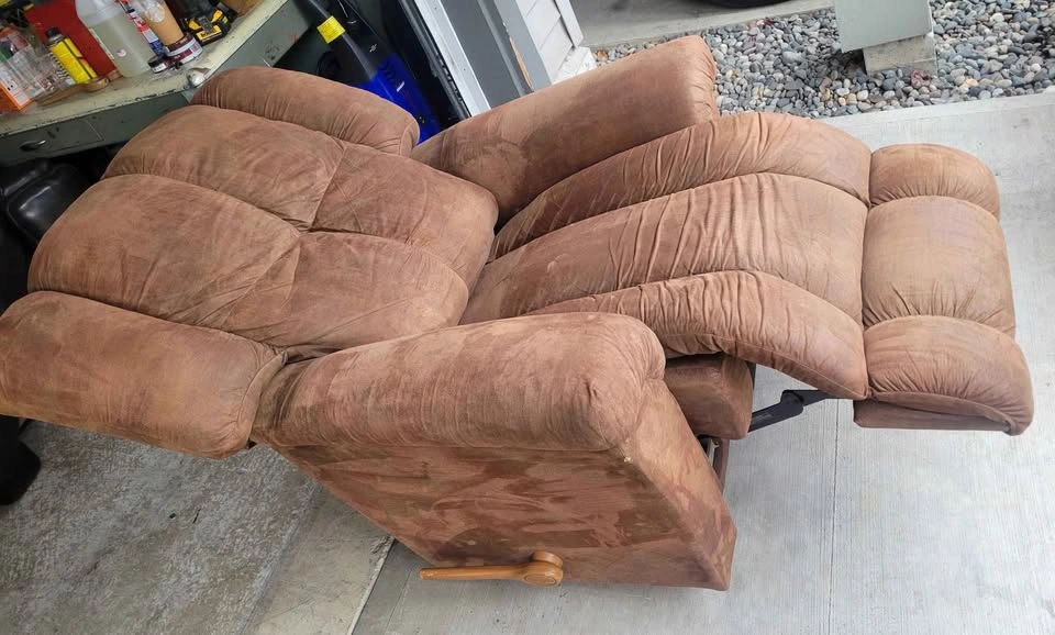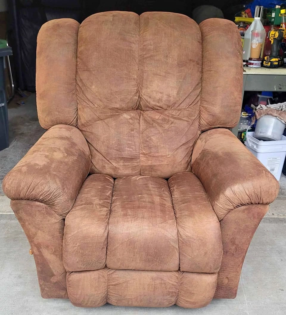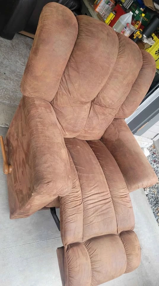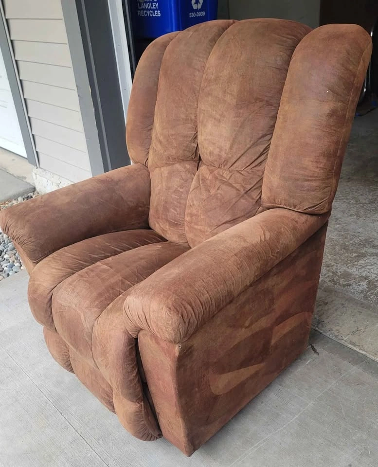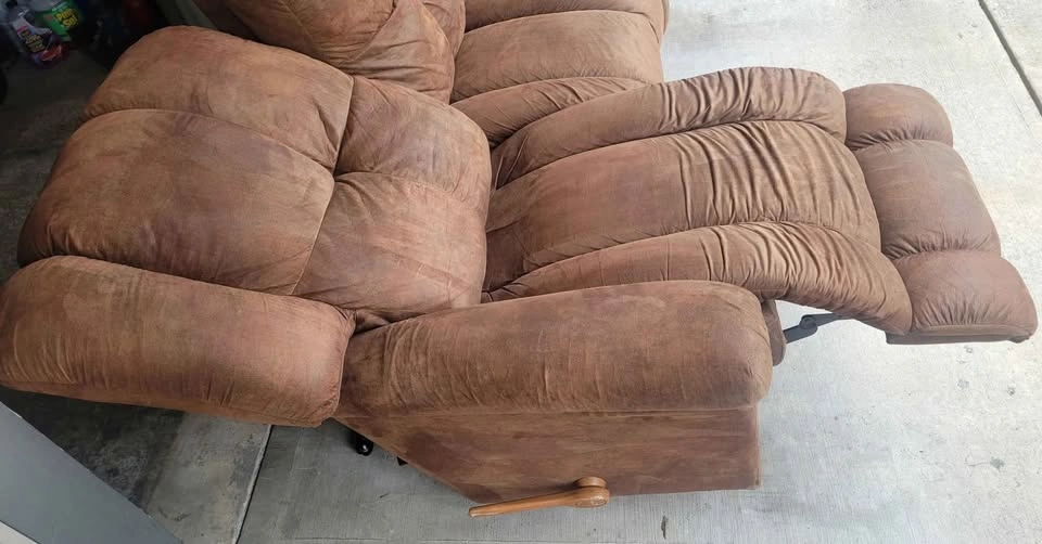 86Excellent condition milk chocolate colored microsuede recliner sofa and matching rocker recliner from LaZBoy. We just had both pieces professionally deep cleaned and protected on Oct 20th. They are both in excellent clean condition aside from one minor (1cm) imperfection on each piece (*see pics) and have not been used since being cleaned. Asking $675 for both pieces. Willing to sell separately: Sofa $350, Chair $350. Clean, comfy, and ready to be enjoyed for years to come! Everything works perfectly, exactly as it should. The chair rocks, reclines and lays almost all the way flat for maximum comfort and convenience. The sofa has a wall safe (Reclina-way) recliner on each end, and the center piece is stationary. This set is super comfortable and very clean. They can be picked up anytime during the day in Langley Township area near Home Depot. Coming from a clean non smoking home with no children or pets.