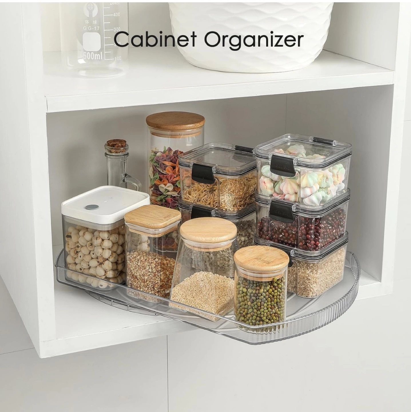 10916.5 inch Clear Rectangle Fridge Organizer Storage, 360° Rotating Lazy Susan for Cabinet, Pantry, Countertop ***missing suction***