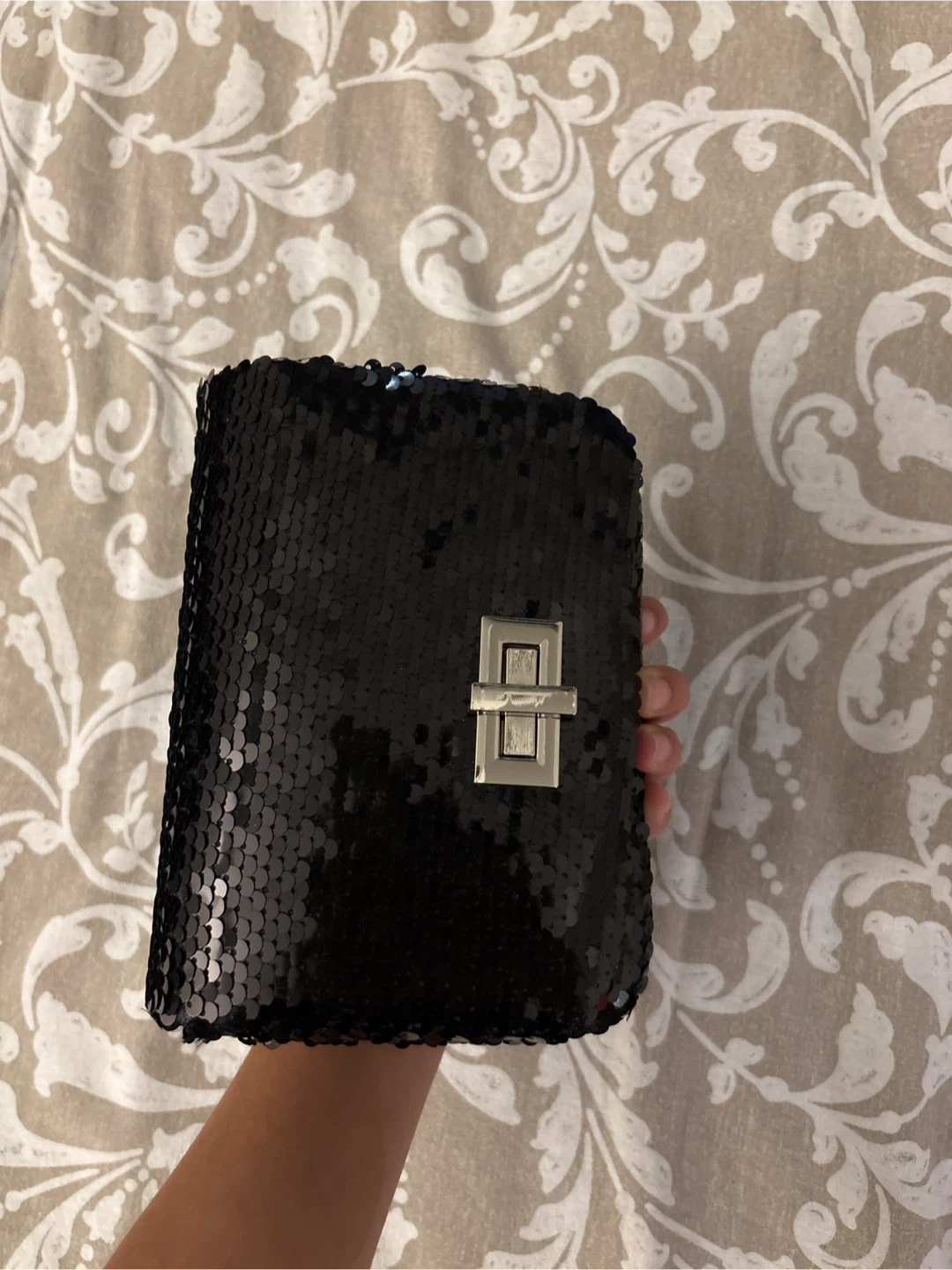 207This is a cute Le Chateau black sequin clutch purse. It's in great condition and ready for a night out! It has a chain strap and brand new, never used.