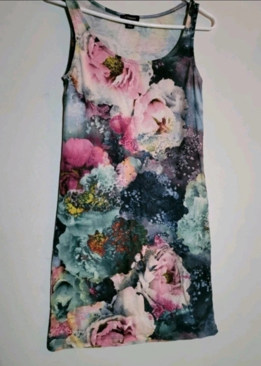 π₯ Le Chateau tank dress in size P/S. It features a beautiful floral pattern. The dress is made in the United Kingdom.