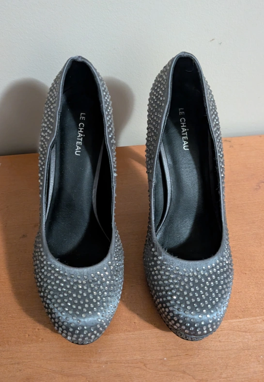 Selling a pair of Le Chateau heels in size 9. These stylish heels are covered in rhinestones and would be perfect for a night out or special occasion! They are in like-new condition and ready for a new home.