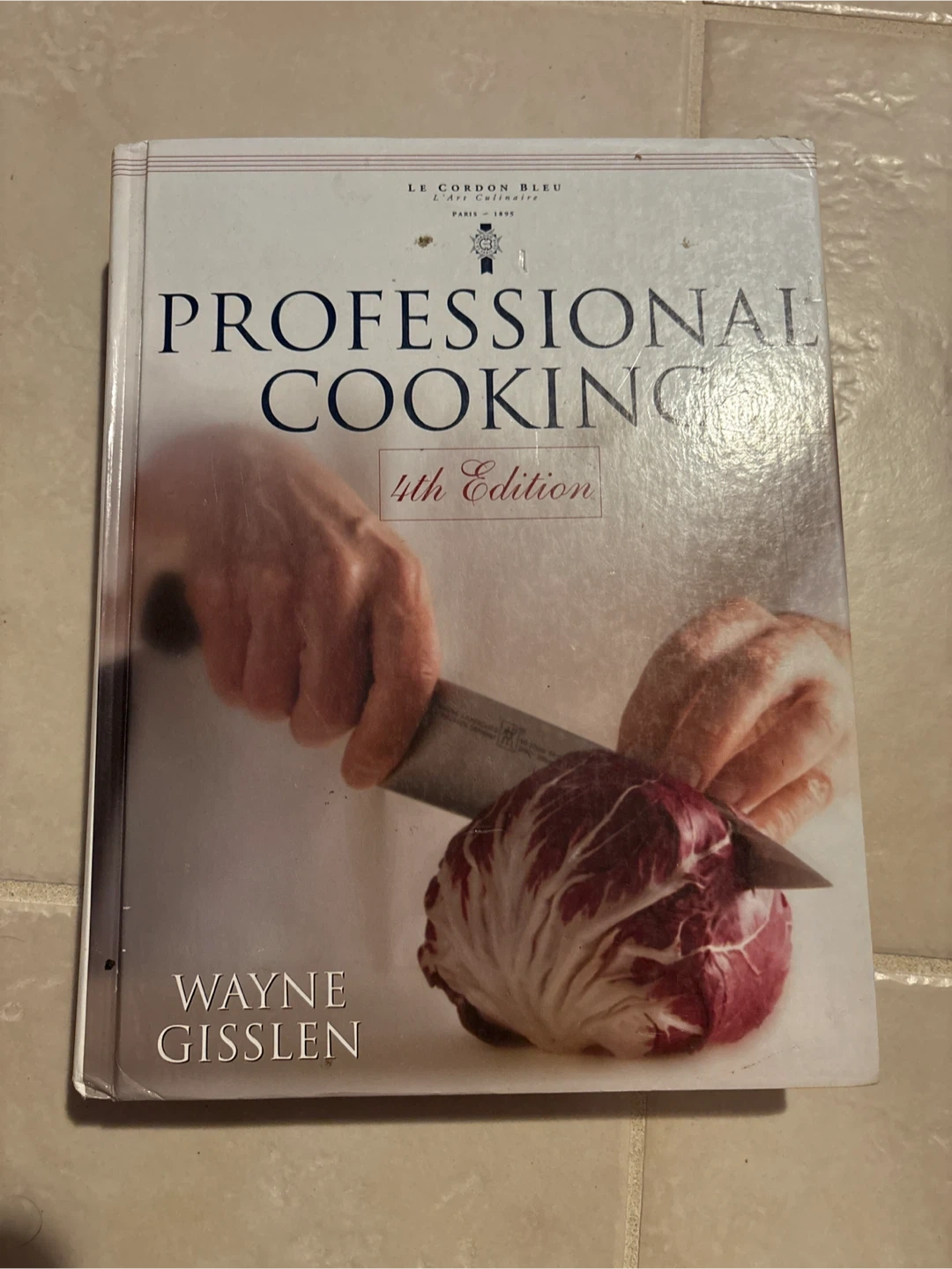 Selling a copy of Le Cordon Bleu Professional Cooking, 4th Edition by Wayne Gisslen! It's a great resource for anyone interested in culinary arts and professional cooking techniques. Purchased used and does have writing on side of book.