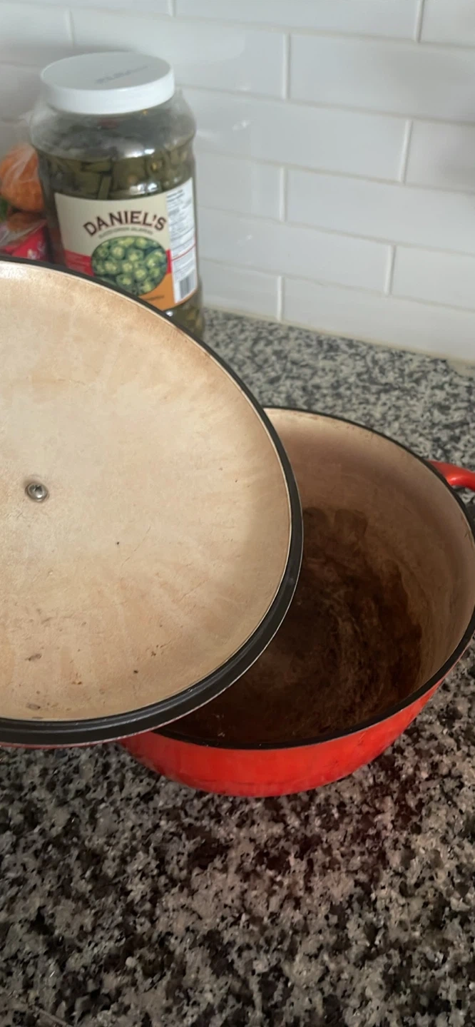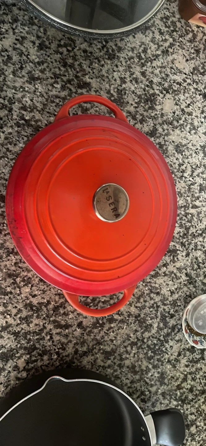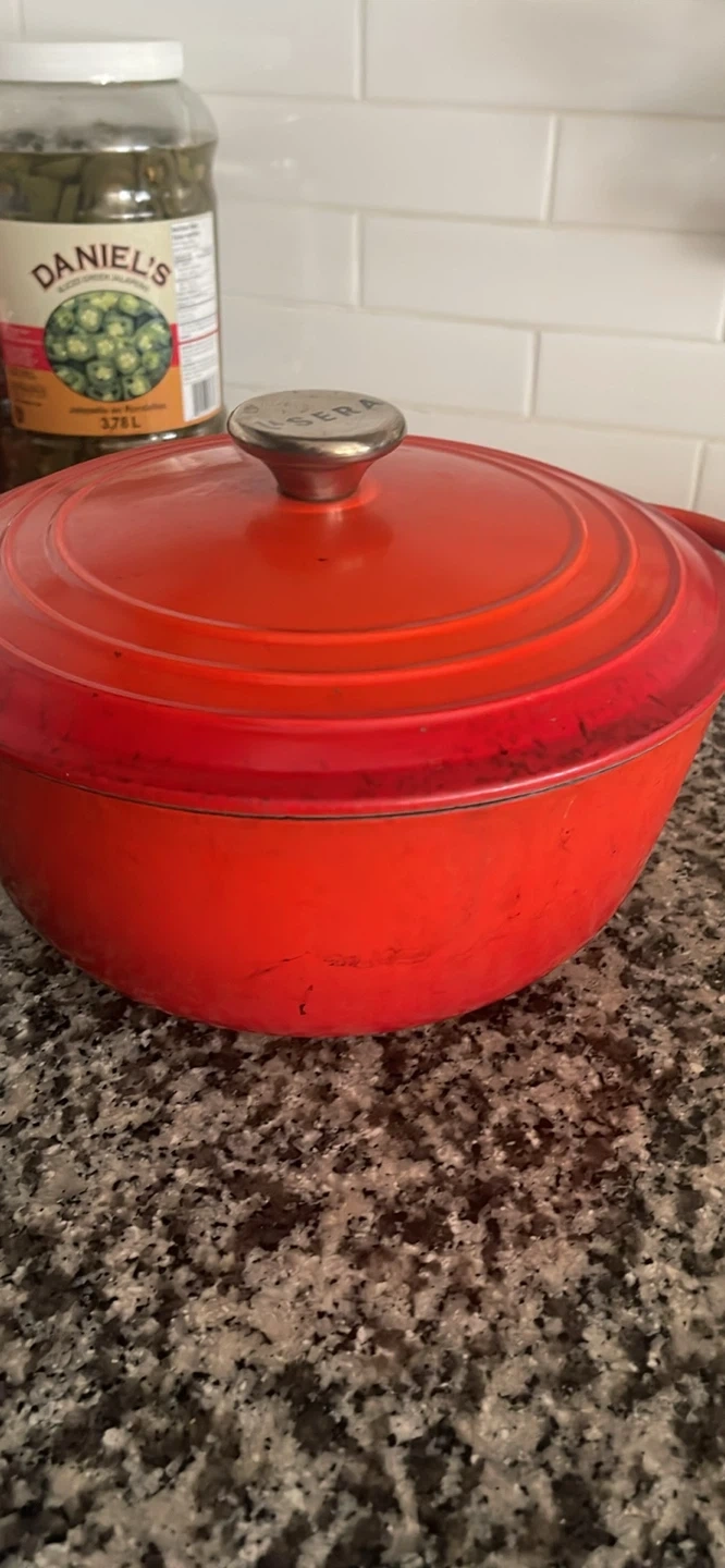 Selling a Le Sera dutch oven in red. It's in used condition, as you can see in the photos. Perfect for making stews, braises, and more!