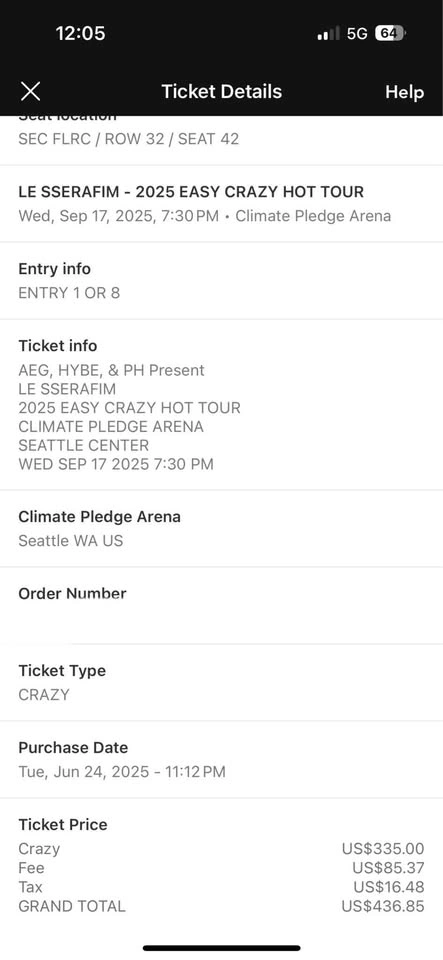 10Selling x3 floor tickets for $600 CAD/EACH (roughly what i paid for) - Can do a small discount if buying all 3 Sec FLR, Row 32, Seats 42-44 TICKETS WILL BE TRANSFERRED THROUGH TICKETMASTER IN PERSON Concert Location: Climate Pledge Arena, Seattle, WA Date: Sep 17, 2025 - 7:30PM Reason for sale: I have something important to do and might not be able to make it on time for the concert and i don't wanna risk being late I can meet up in skytrain station to transfer the tickets in person Cash or etransfer in person is preferred