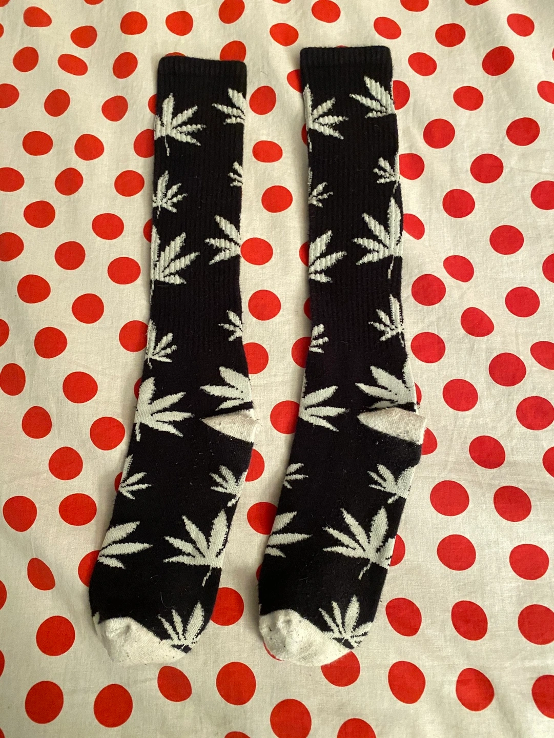 Ribbed black and grey *leaf* patterned socks. No holes or rips!