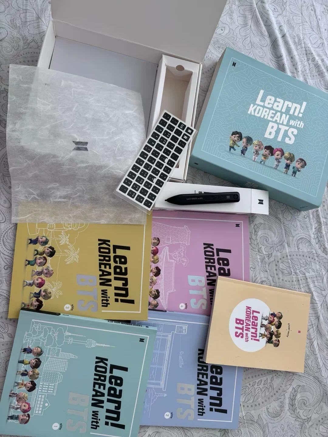 68Selling a complete Learn! Korean with BTS package. Includes all the books, keyboard stickers, and the Motipen. Comes with the original box too!