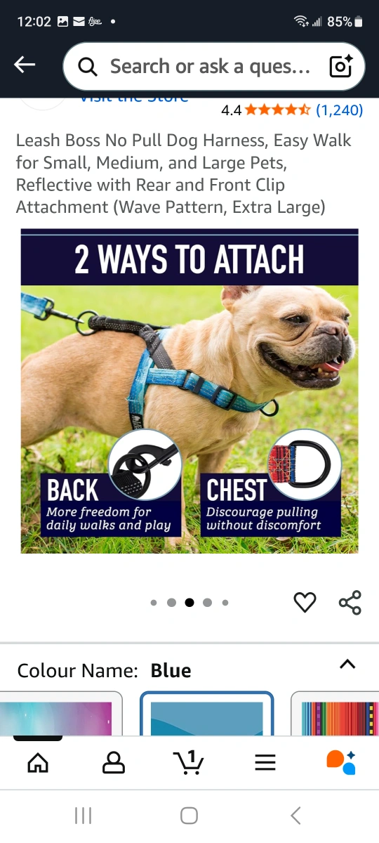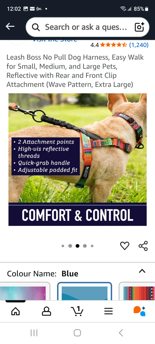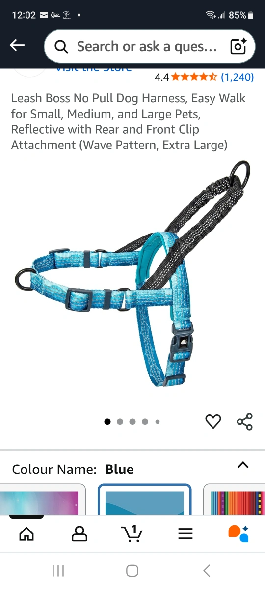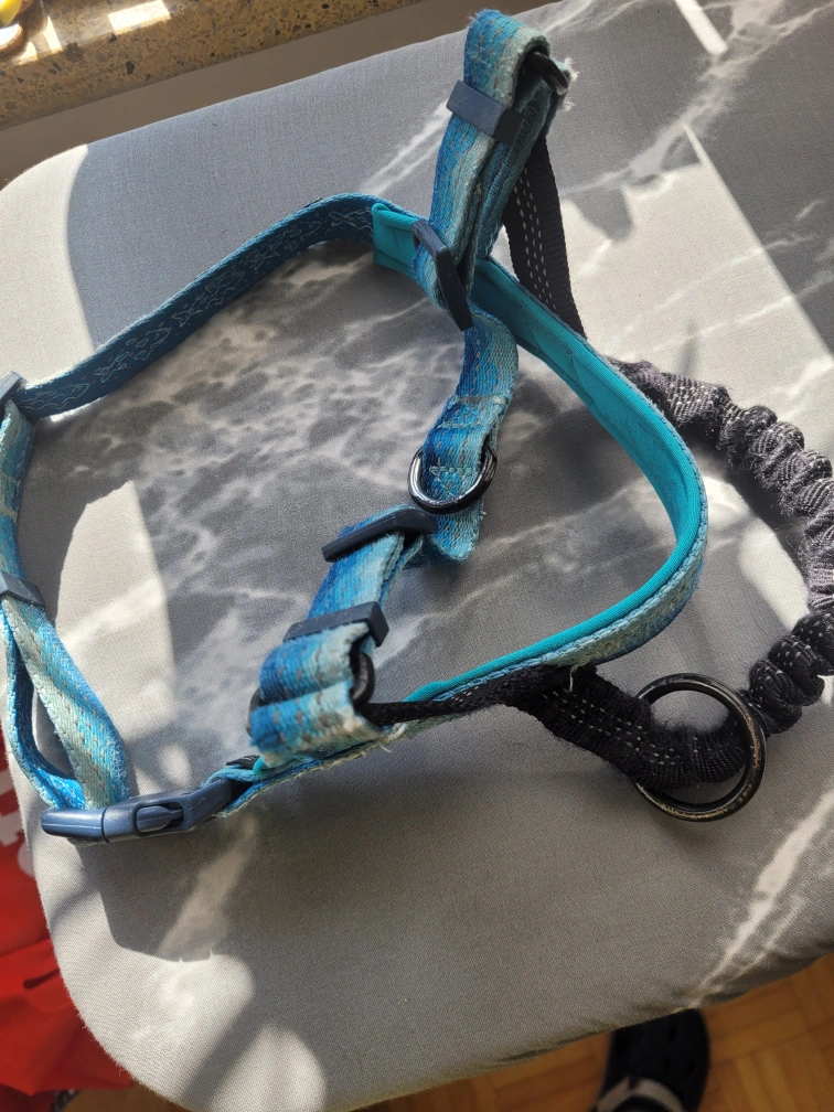 ALeash Boss No Pull Dog Harness in blue! Size small, some wear and tear. My dog grew out of it. It's designed for easy walking and features both front and rear clip attachments. Perfect for small, medium, and large pets!