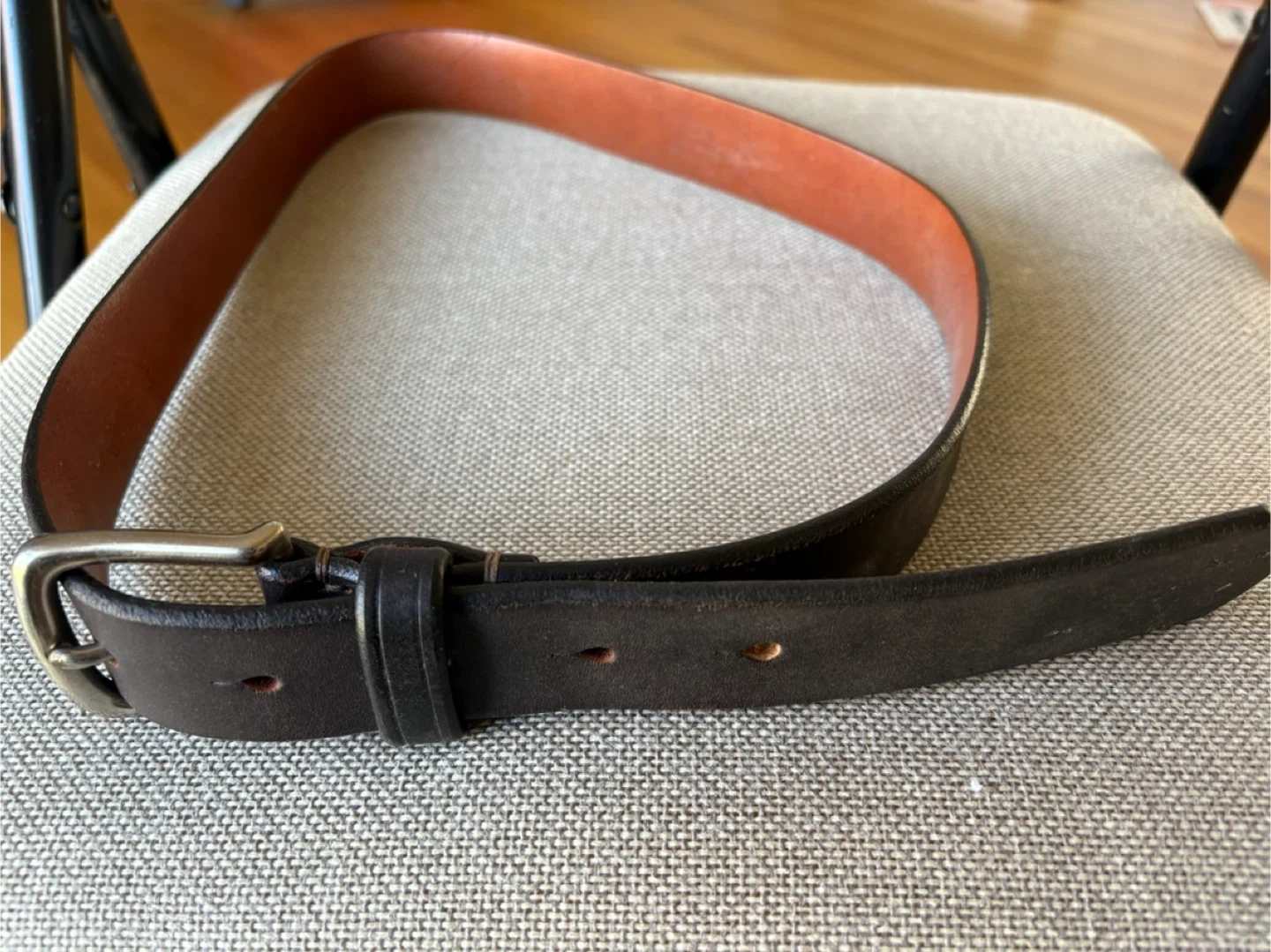 Selling a black surface and brown inside leather belt. It has a silver buckle and is in good condition. Perfect for adding a touch of style to any outfit! Pick up at Morley trail NW