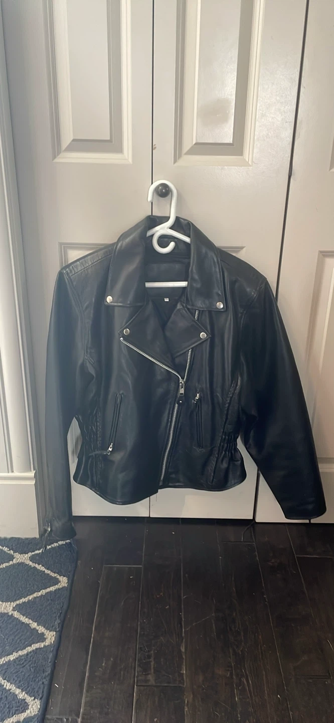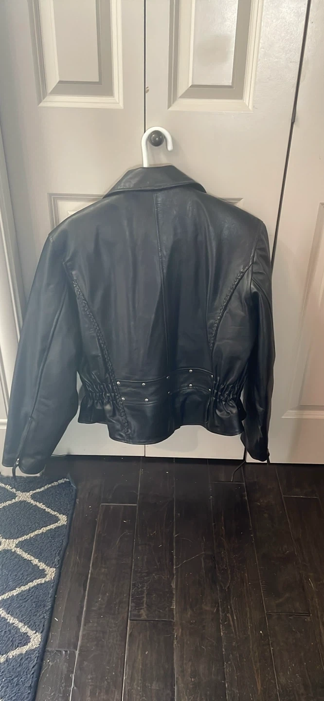 15Selling a black leather motorcycle jacket. It's in great condition and ready for a new owner. Perfect for riding in style!