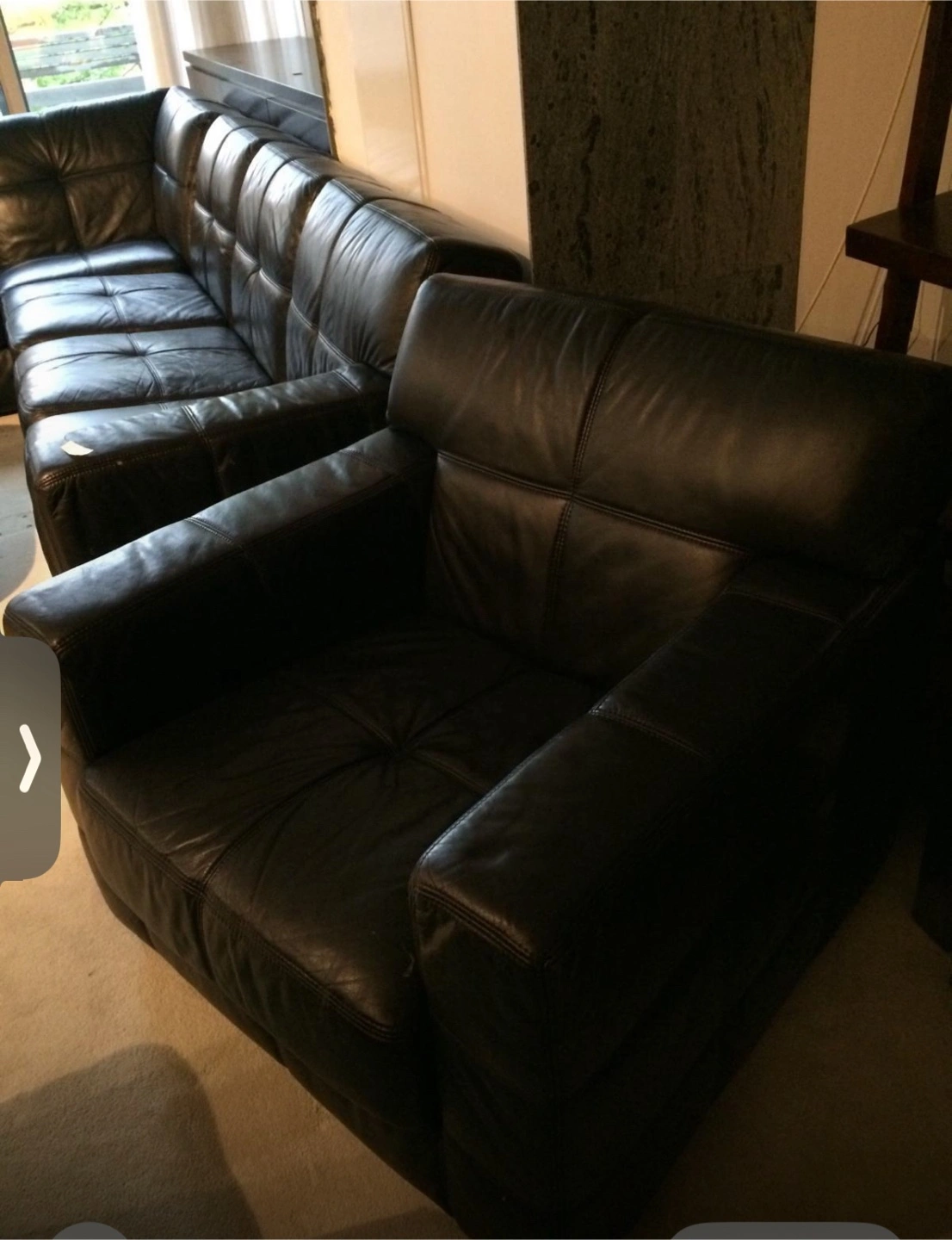 26Leather Sofa Set from the Art Shoppe L shape with Ottoman and Arm Club Chair