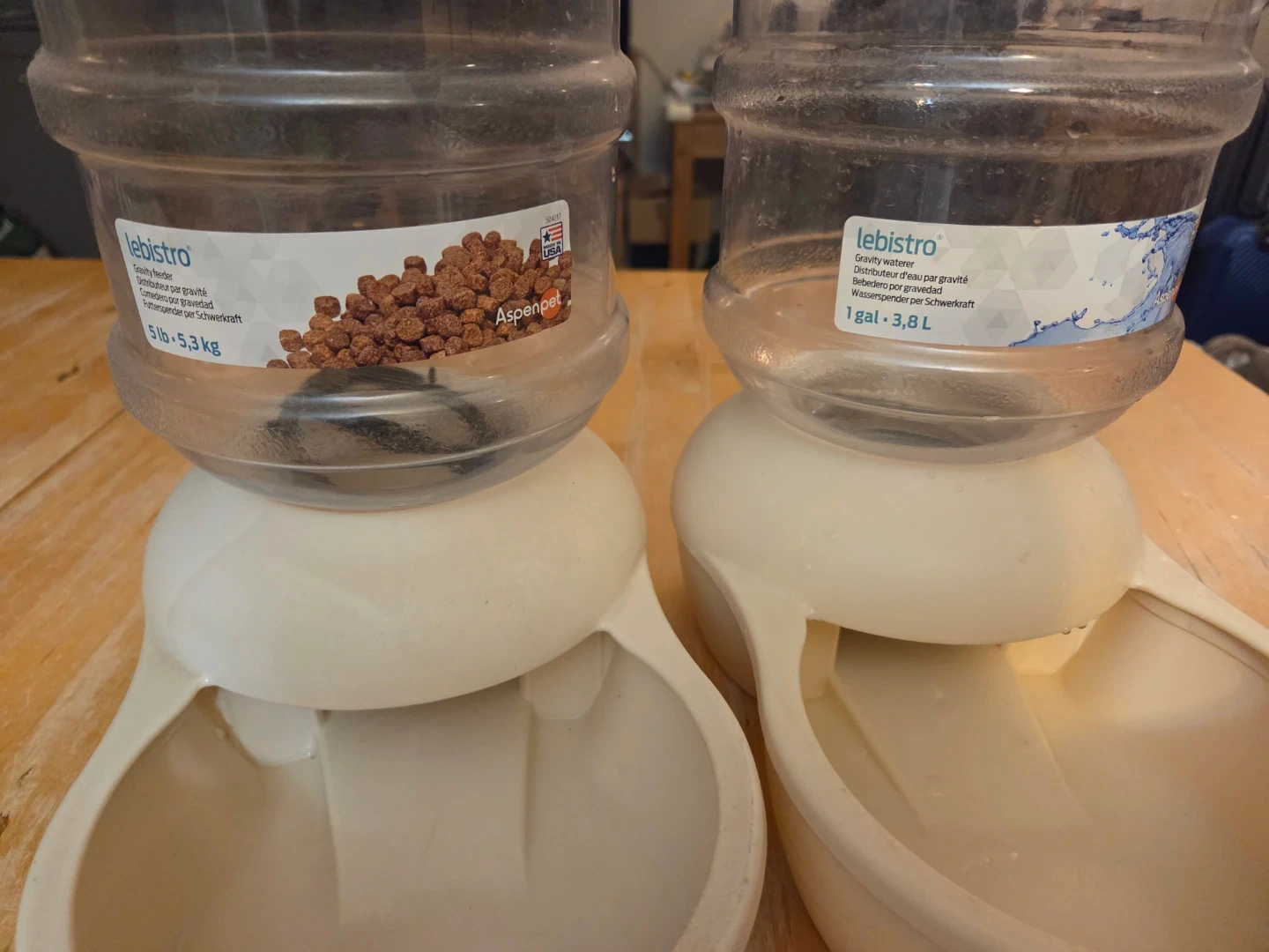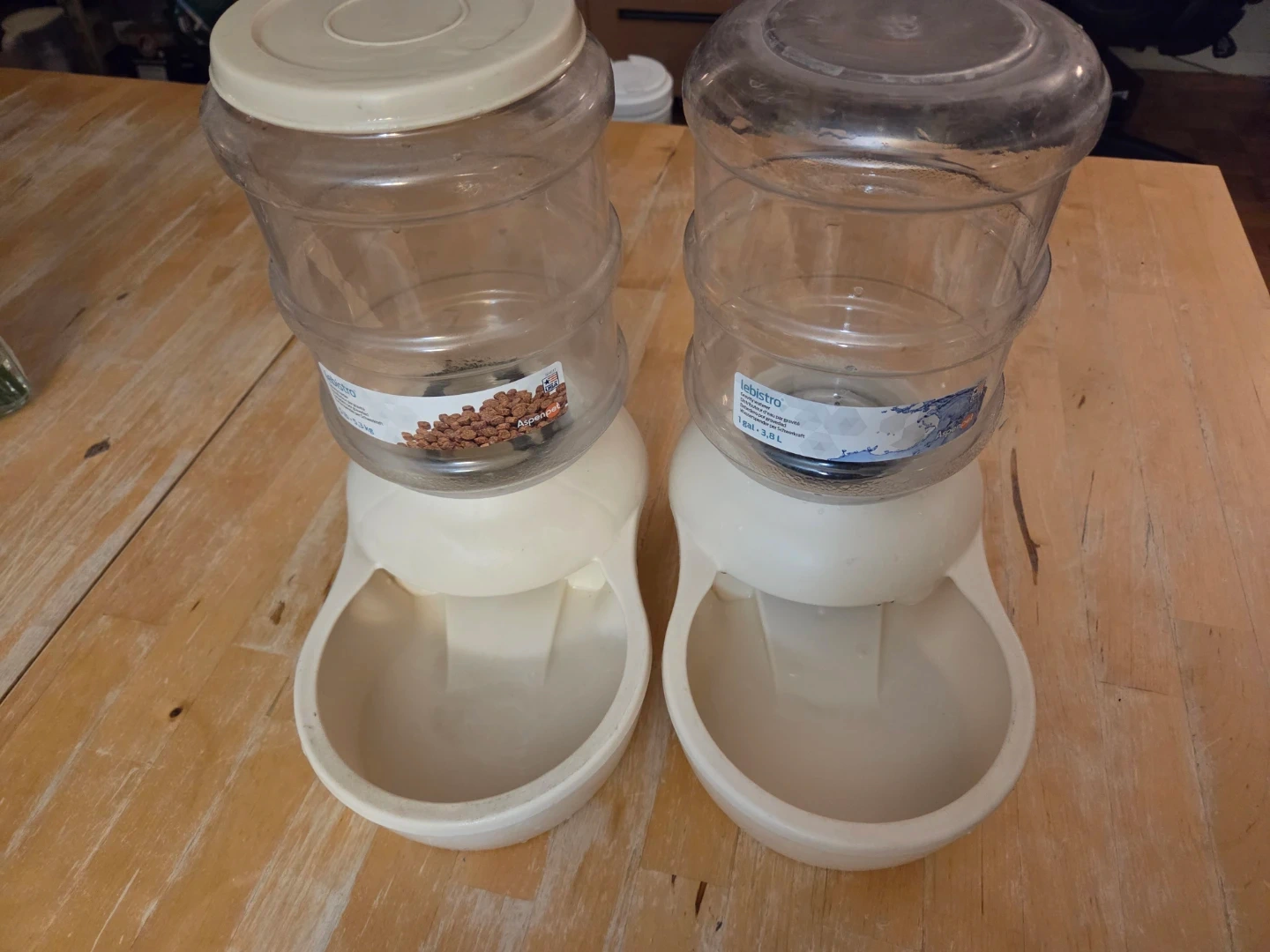 73Selling two Lebistro pet dispensers! One is for dry food and holds up to 5 lb (5.3 kg), and the other is for water, holding 1 gallon (3.8 L). They're in great condition and ready to keep your furry friends happy and hydrated!