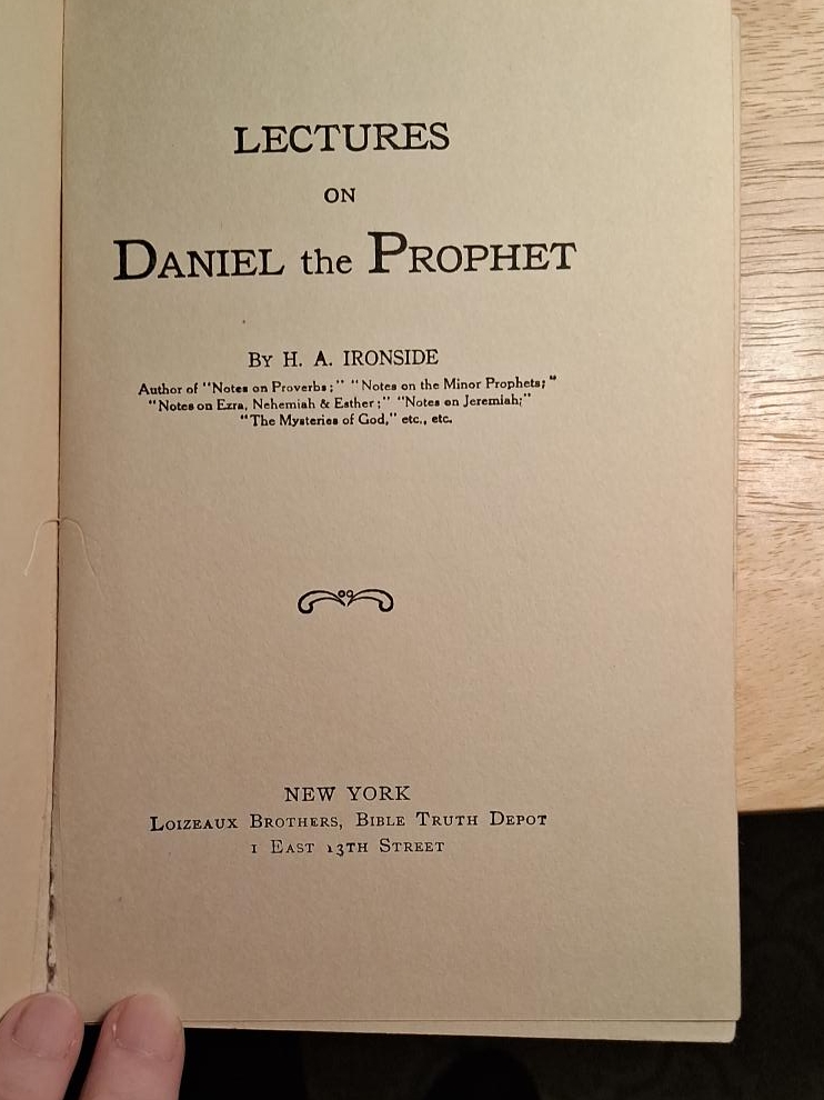 Selling a copy of "Lectures on Daniel the Prophet" by H. A. Ironside. It's a book by Loizeaux Brothers, Bible Truth Depot in New York. Perfect for anyone interested in religious studies or collecting classic theological works