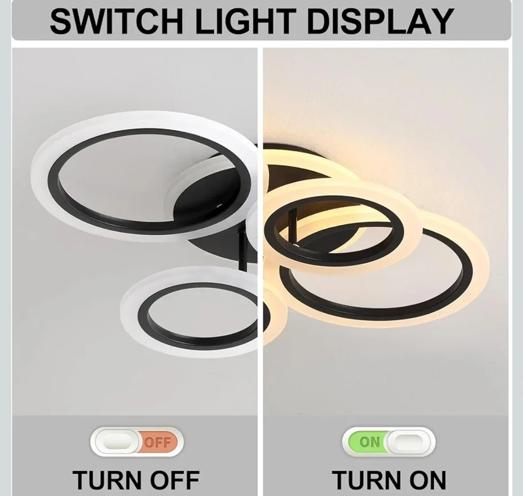 93Modern LED ceiling light for your kitchen, living room, bedroom, or laundry room! This dimmable light fixture has 4 rings and is black in colour. It operates between 3000-6500K and 50W. Great way to brighten up your space Location: Taunton and Townline Check out my other listings