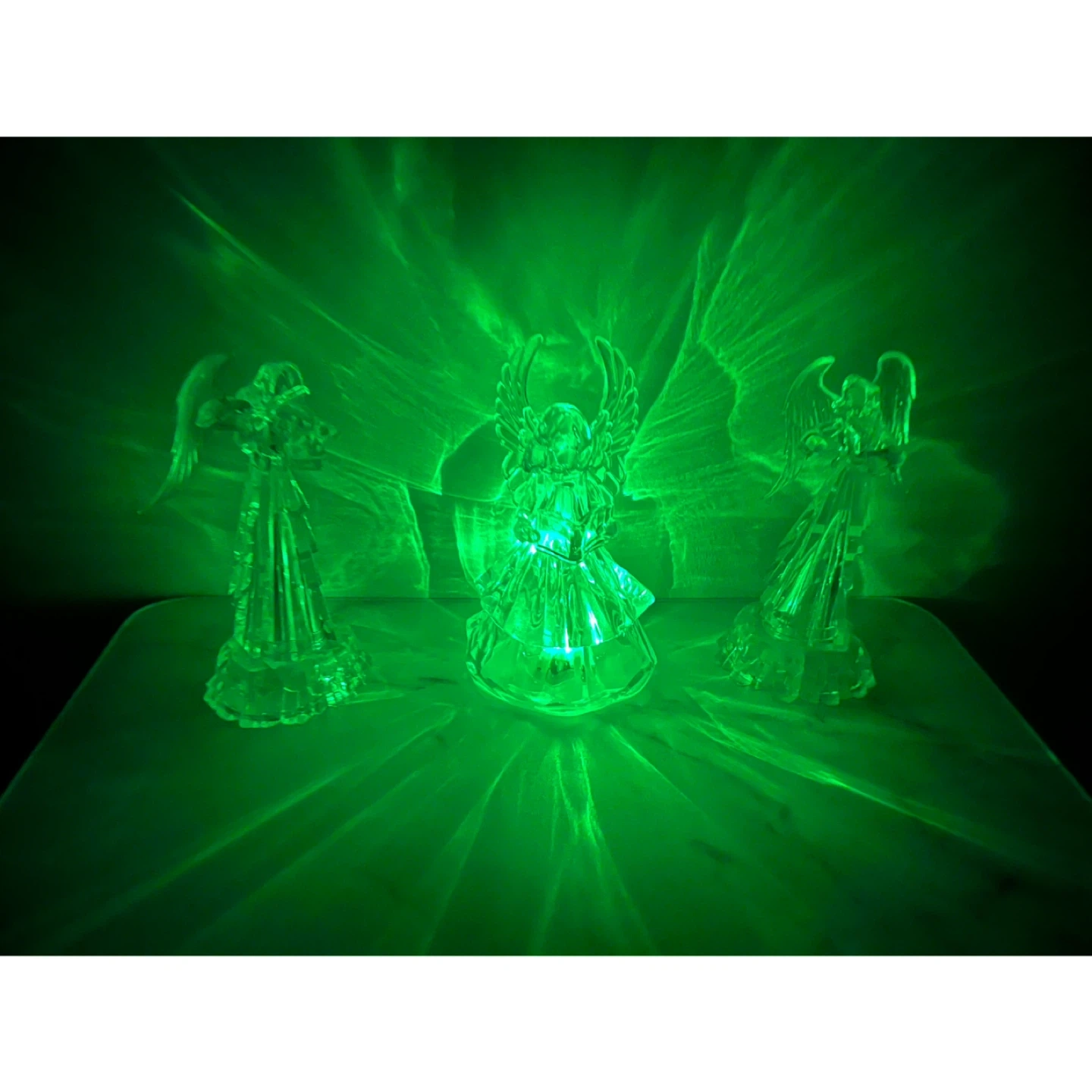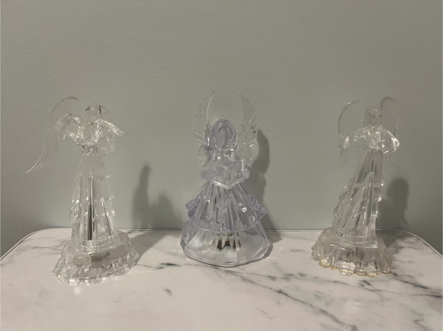 Selling some nice clear angel figurines. They would make a beautiful addition to any home as a decorative piece. They’re in fairly good conditions and ready for a new home. The middle one lights up in different glowing colours. All of them together are for just a $5 Bundle.