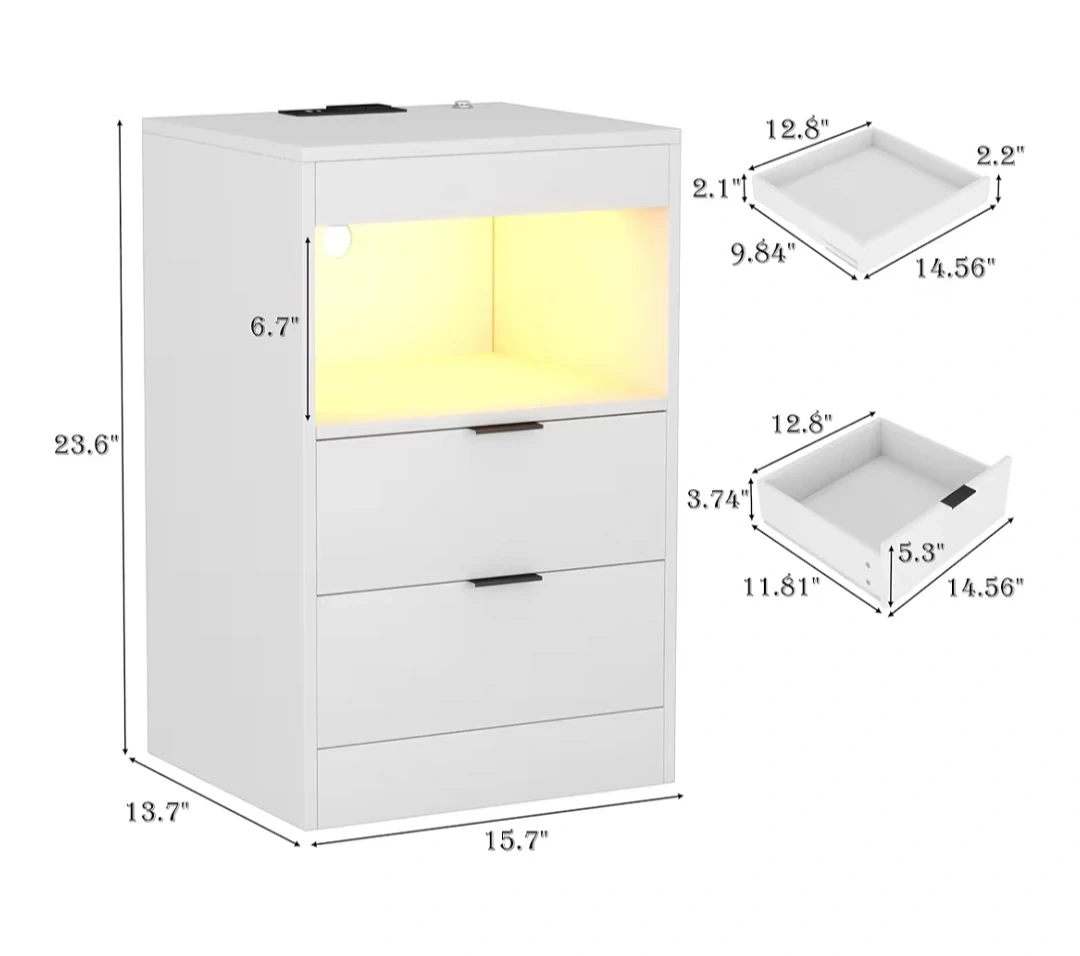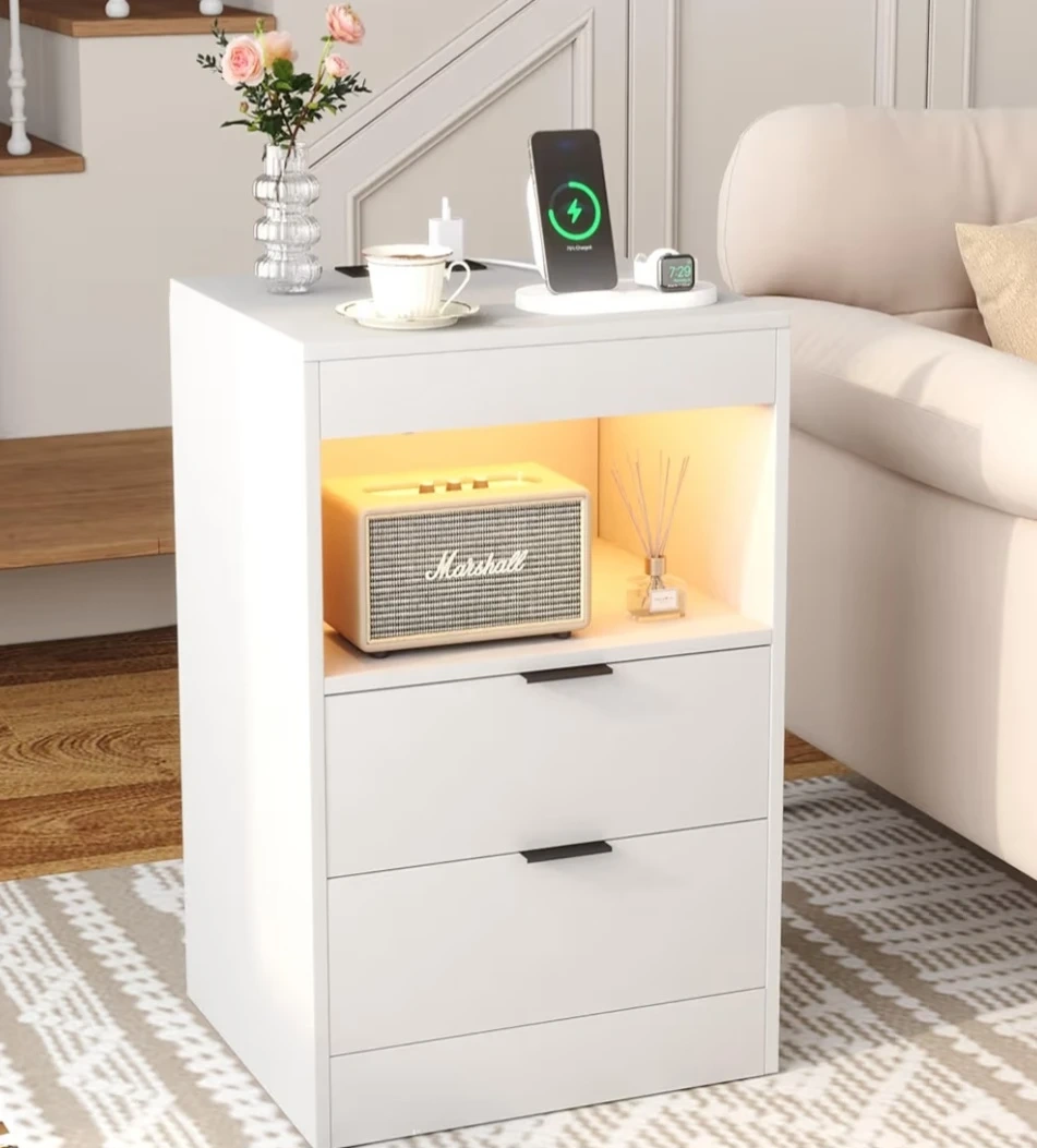 Show allLED Nightstand Bedside Table with Charging Station(NEW)