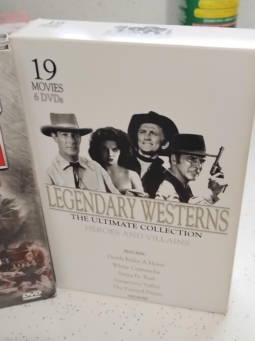 121Selling a DVD collection called Legendary Westerns: The Ultimate Collection. It includes 19 movies on 6 DVDs, featuring classics like Death Rides A Horse, White Comanche, and Santa Fe Trail! A great collection for any Western movie fan