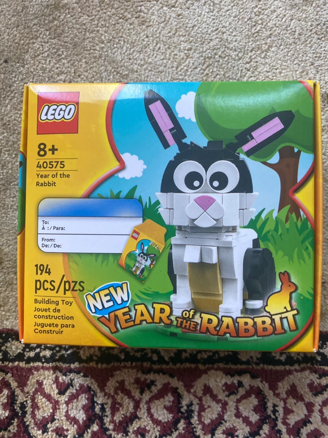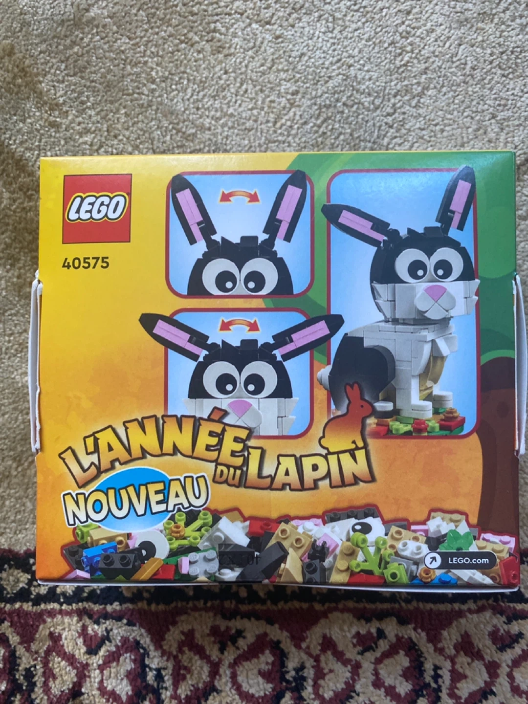 60Selling a brand new LEGO set, number 40575, Year of the Rabbit! It's a cute little set to celebrate the Lunar New Year. The box includes 194 pieces to build your own adorable rabbit figure. Perfect for LEGO fans and collectors!