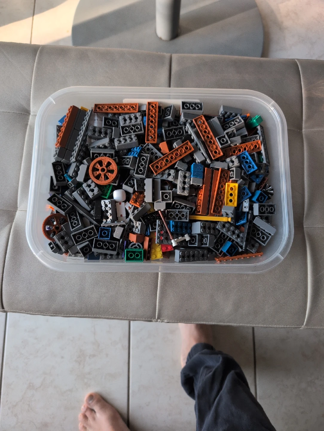 92Selling a collection of Lego bricks in various shapes and colours. Perfect for building and creative play! Includes a mix of grey, orange, blue, and yellow pieces.
