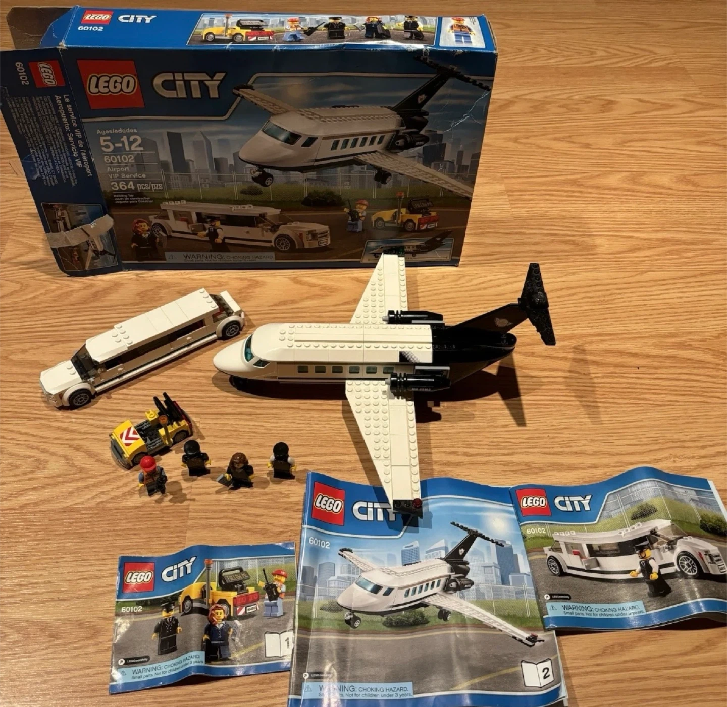 Selling a Lego City Airport VIP Service set, number 60102! It's recommended for ages 5-12. The set includes 364 pieces and features an airport VIP service theme. Comes with the original box and instructions!