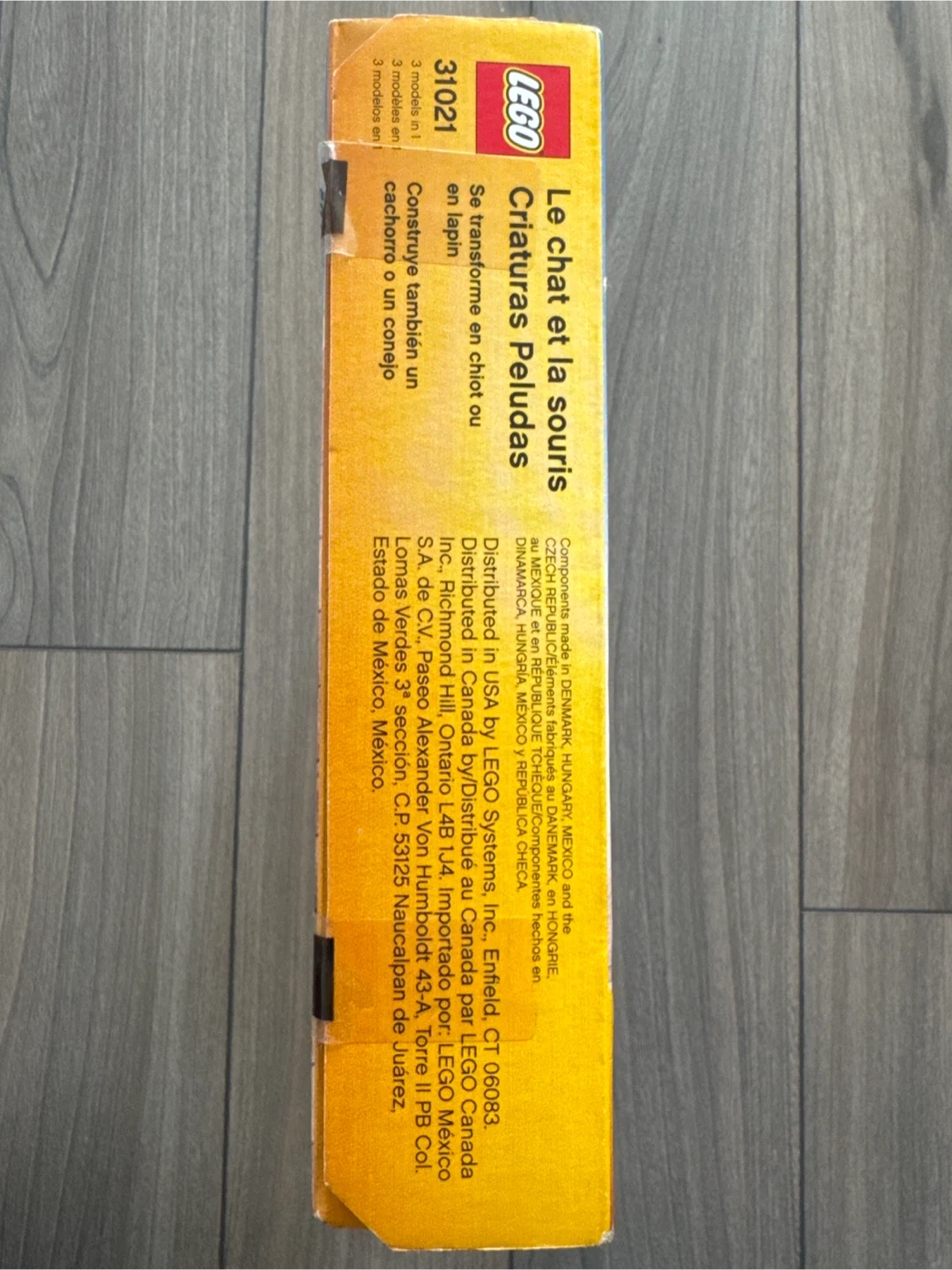 81Selling a LEGO Creator 3in1 Furry Creatures set (model 31021). Never opened and has original tape. This set allows you to build a cat, a mouse, a rabbit or a dog! Great for kids aged 7-12 who love building and creating