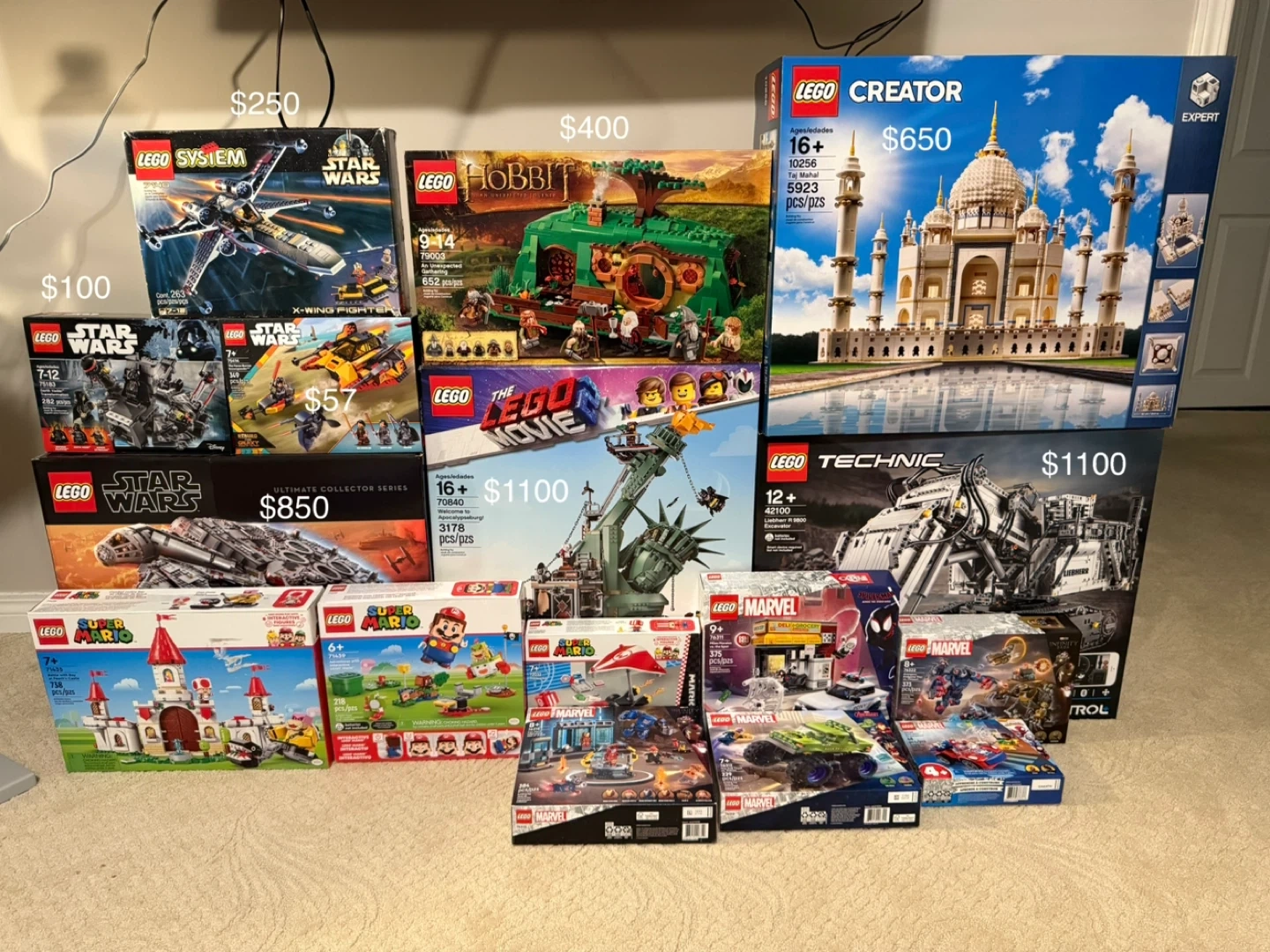 10Selling various Lego sets including Disney, Marvel, Star Wars, and Super Mario. Prices are marked on the boxes in the pictures. Great for collectors or kids!