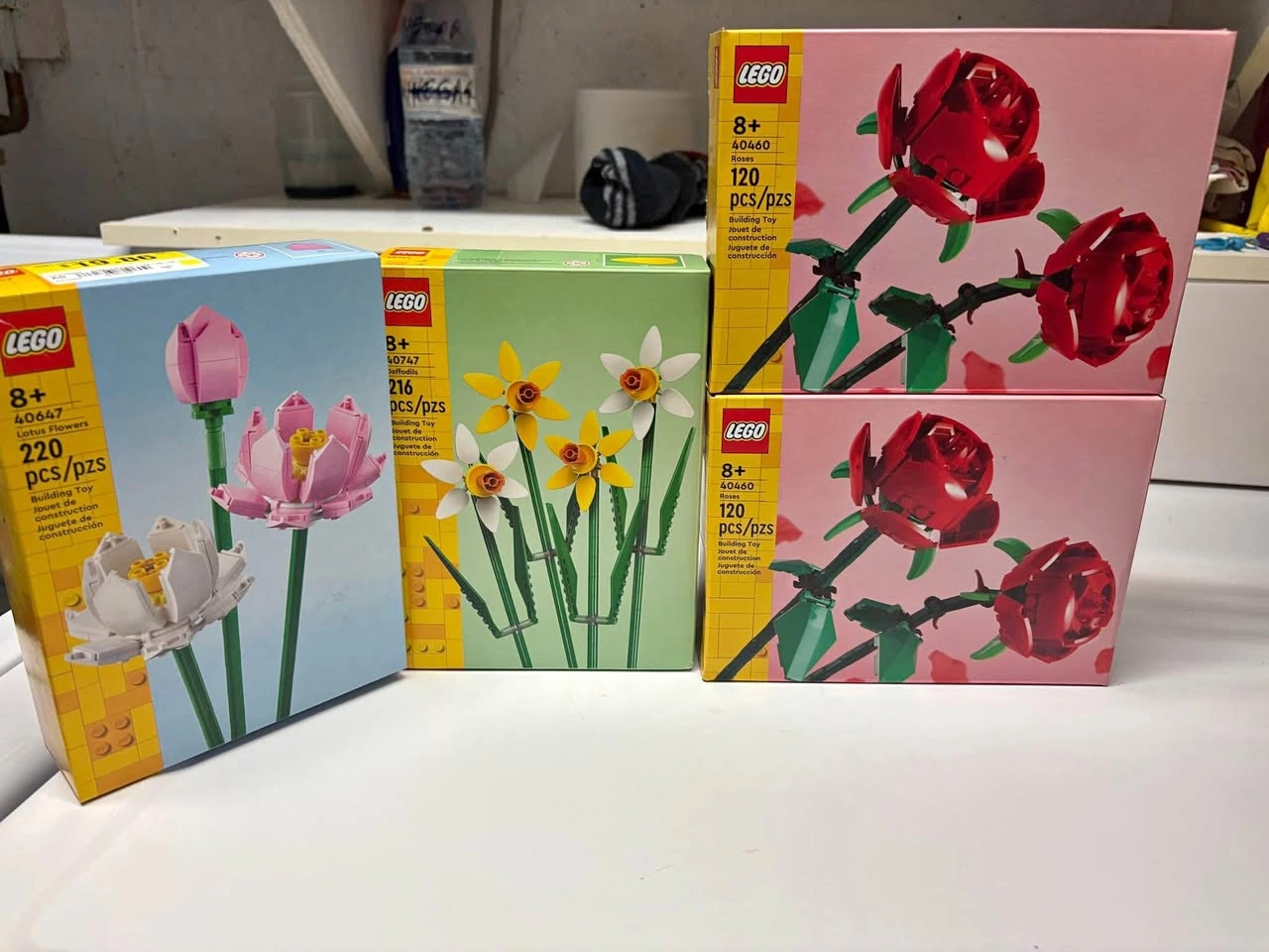 97Selling a lot of 4 brand-new LEGO flower sets β all sealed and perfect for gifts or display! Includes: πΌ LEGO Daffodils (40747) β 1 set πΉ LEGO Roses (40460) β 2 sets πΈ LEGO Lotus Flowers (40647) β 1 set All New in Box (NIB) Retail value: $80+ total Asking $40 for all four (or best offer) β will take $35 for quick sale Pickup Only β Two Options: π‘ Riverbend area (Beeston Drive) π Eastern Chrysler β 1900 Main St Available Tues, Thurs, Fri, Sat (9 AM β 5 PM) Payment: Cash or E-Transfer No Holds / FCFS 100+ Positive Ratings 4.7 / 5.0 Stars β Trusted Seller Adult Collector | Smoke-Free / Pet-Free Home