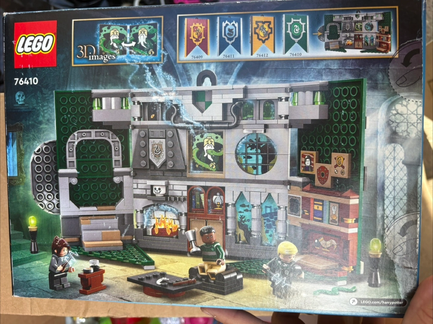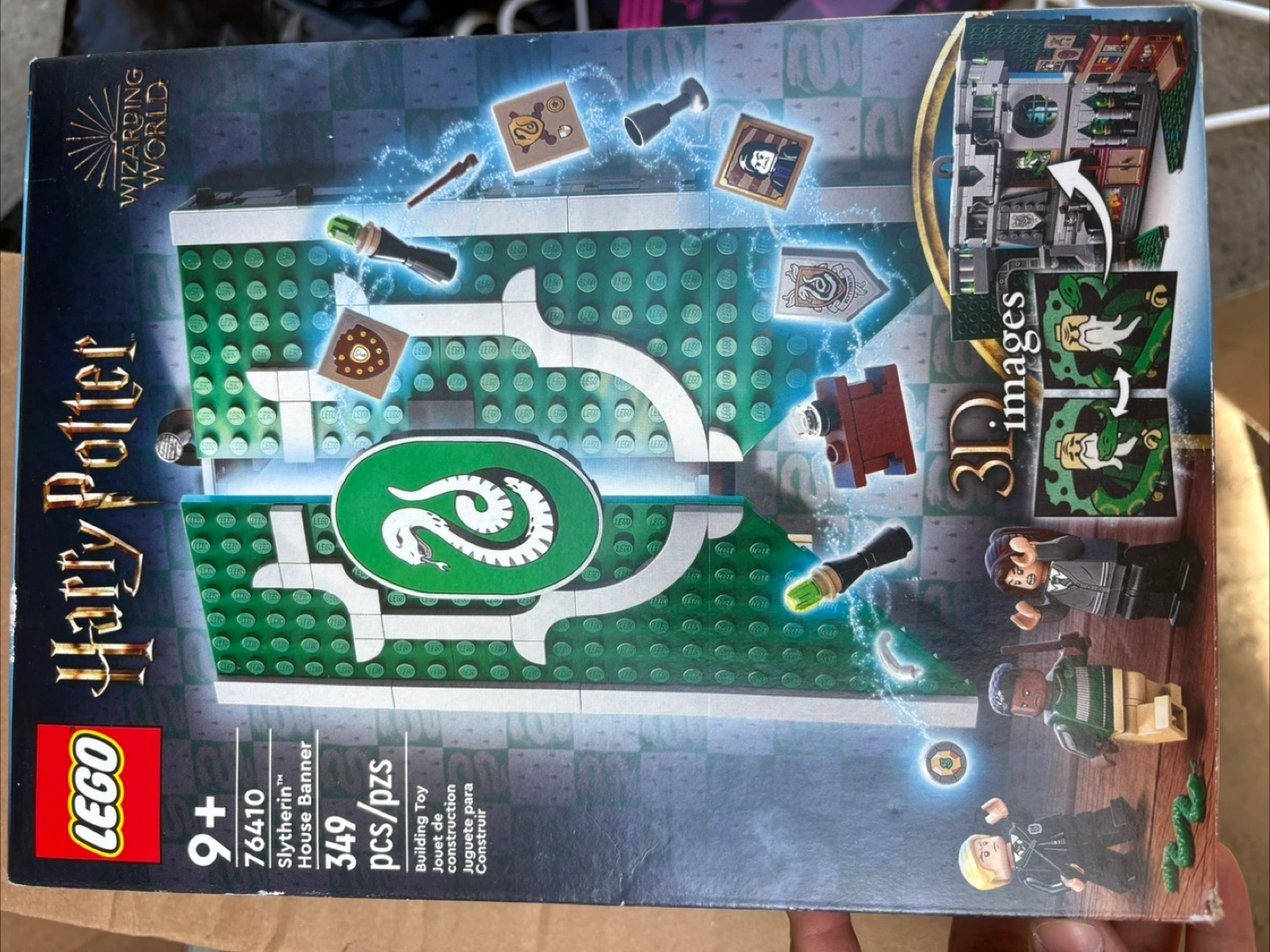 The LEGO set includes the Hogwarts house banner for Slytherin. Contains many pieces to play with. Building a LEGO set can be a relaxing activity.