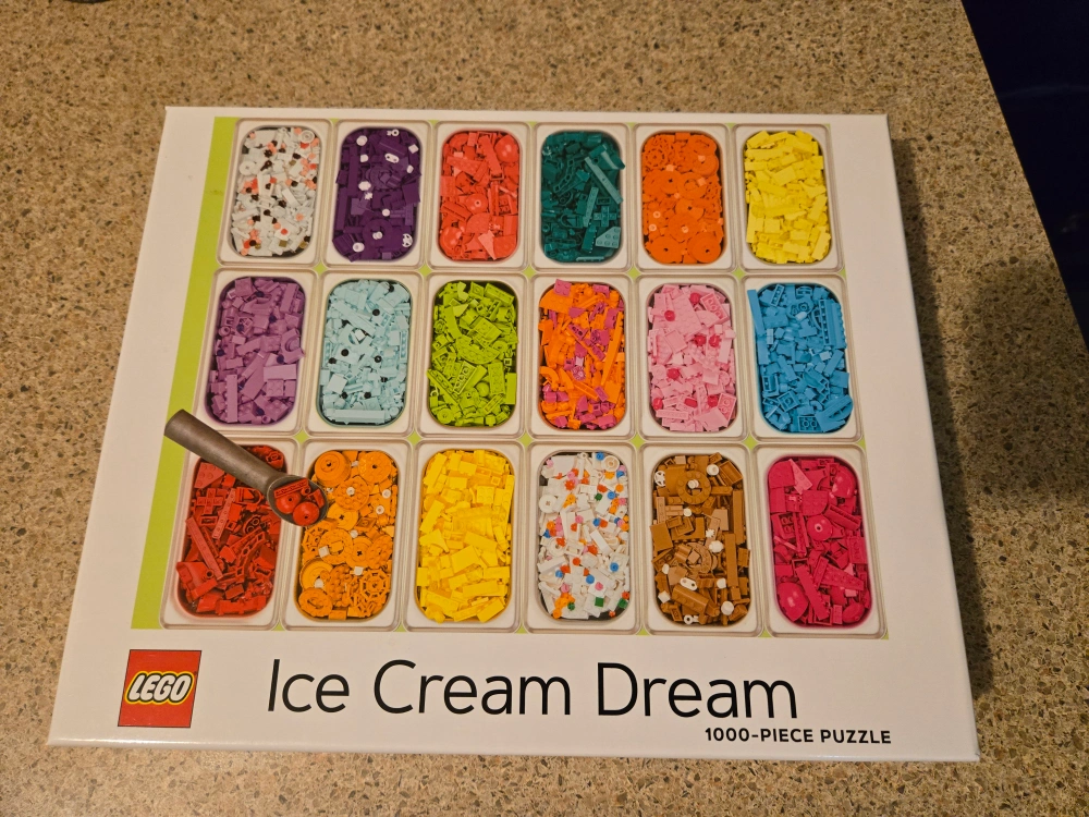 Looking to add a fun and colourful puzzle to your collection? This is a LEGO Ice Cream Dream 1000-piece puzzle! It's a delightful challenge and perfect for LEGO enthusiasts and puzzle lovers alike
