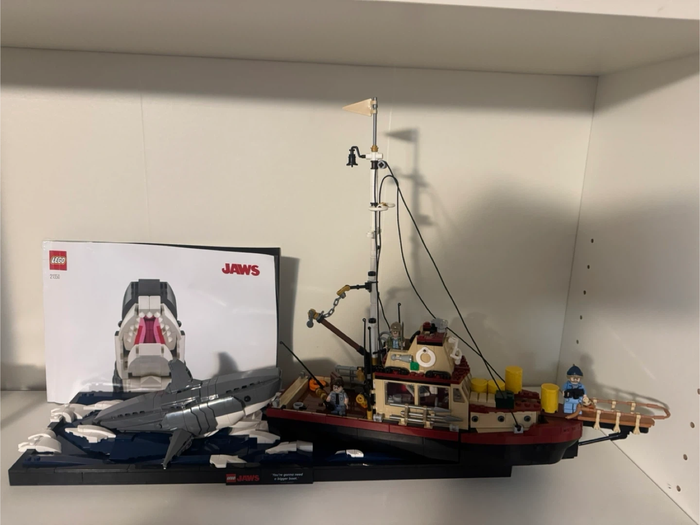 10Selling a open and built but brand new no damage diorama set (21350)! This set captures the iconic scene from the movie Jaws. It would be a great gift for any film or LEGO enthusiast. Includes the Orca boat, a shark, and minifigures!