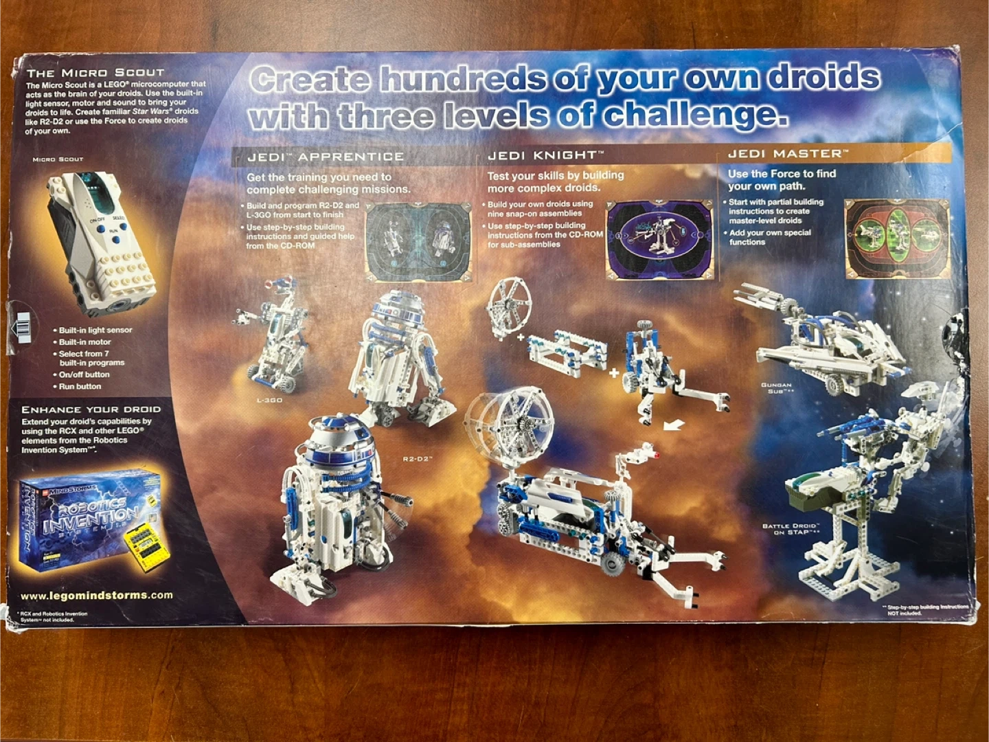 65Selling a LEGO Mindstorms Star Wars Droid Developer Kit (9748)! This kit allows you to create your own droids with three levels of challenge: Jedi Apprentice, Jedi Knight, and Jedi Master. It includes the Micro Scout, a LEGO microcomputer that acts as the droid's brain, motor, and sound to bring your droids to life. Recommended for ages 9+ and contains 657 pieces. Bring your droids to life!