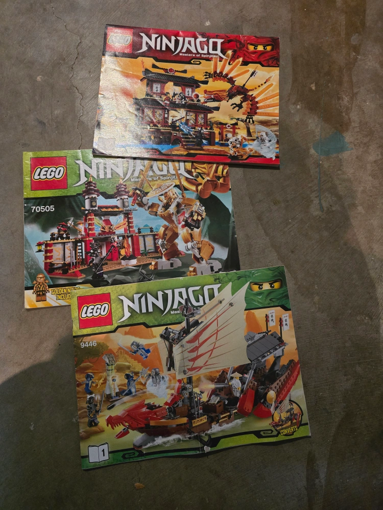 60Selling three LEGO Ninjago instruction manuals for the following sets: - 2507 - 70505 - 9446 all appear complete with minifigures asking best offer for all of them. no not 15 for them all.