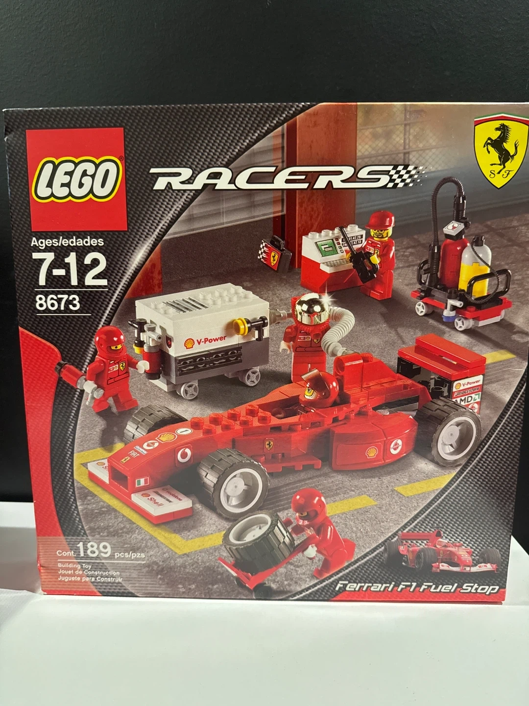 55Selling a LEGO Racers Ferrari F1 Fuel Stop set, model number 8673. It's a fun building toy with 189 pieces. Recommended for ages 7-12. The box is included!