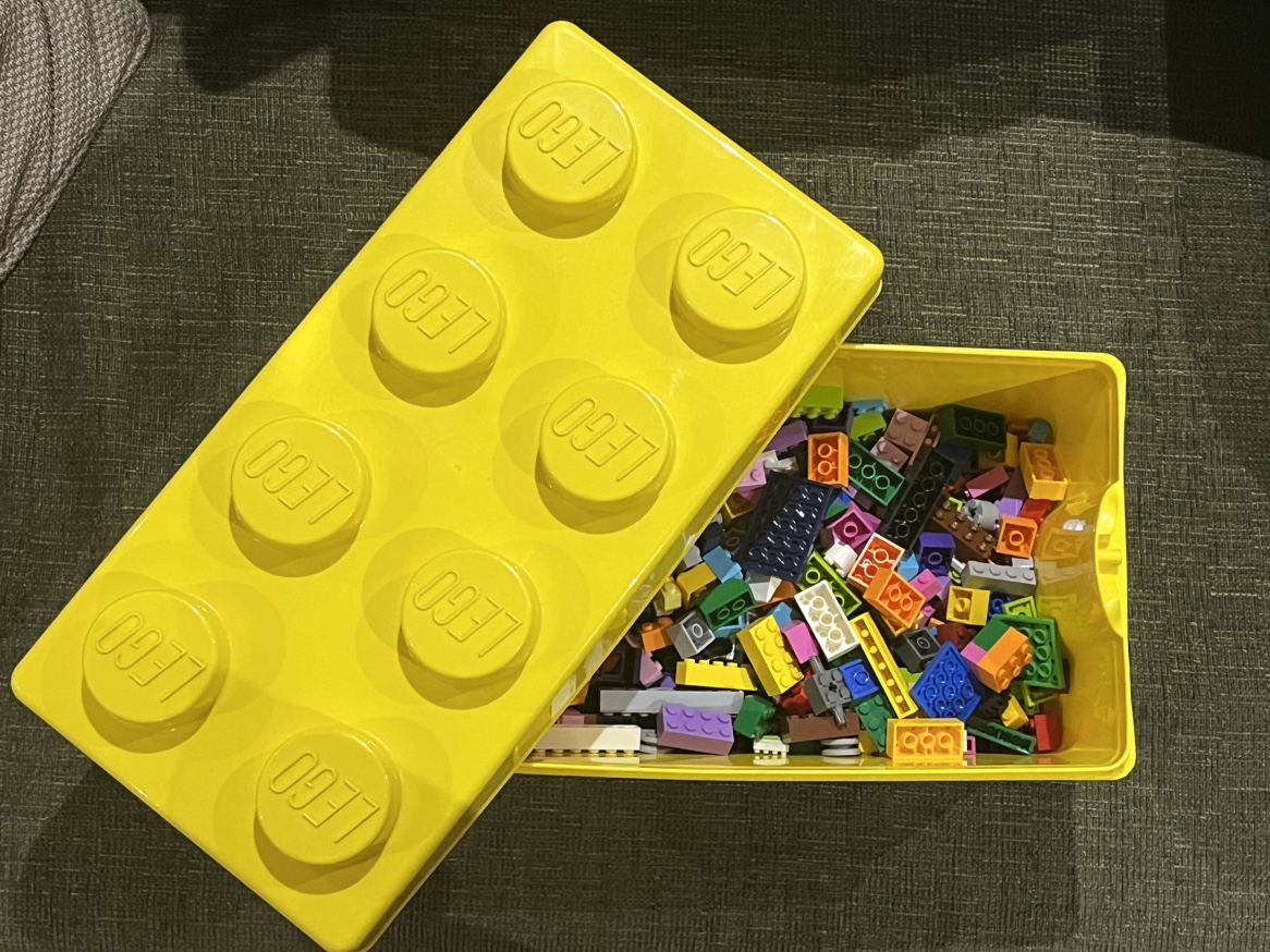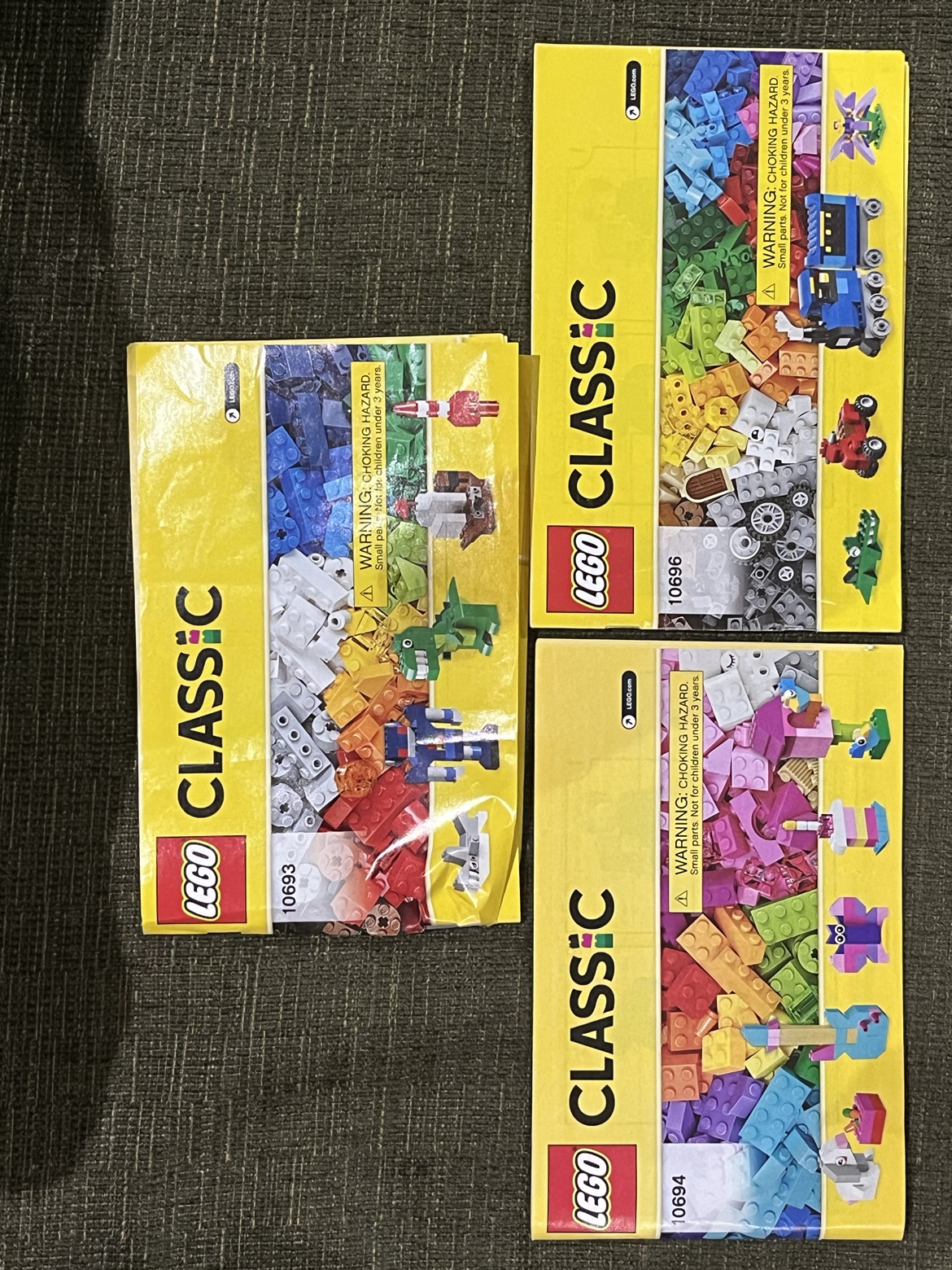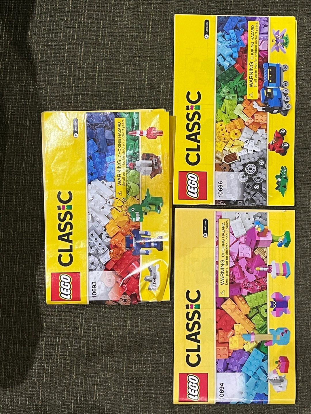 3 sets of Lego pieces and box