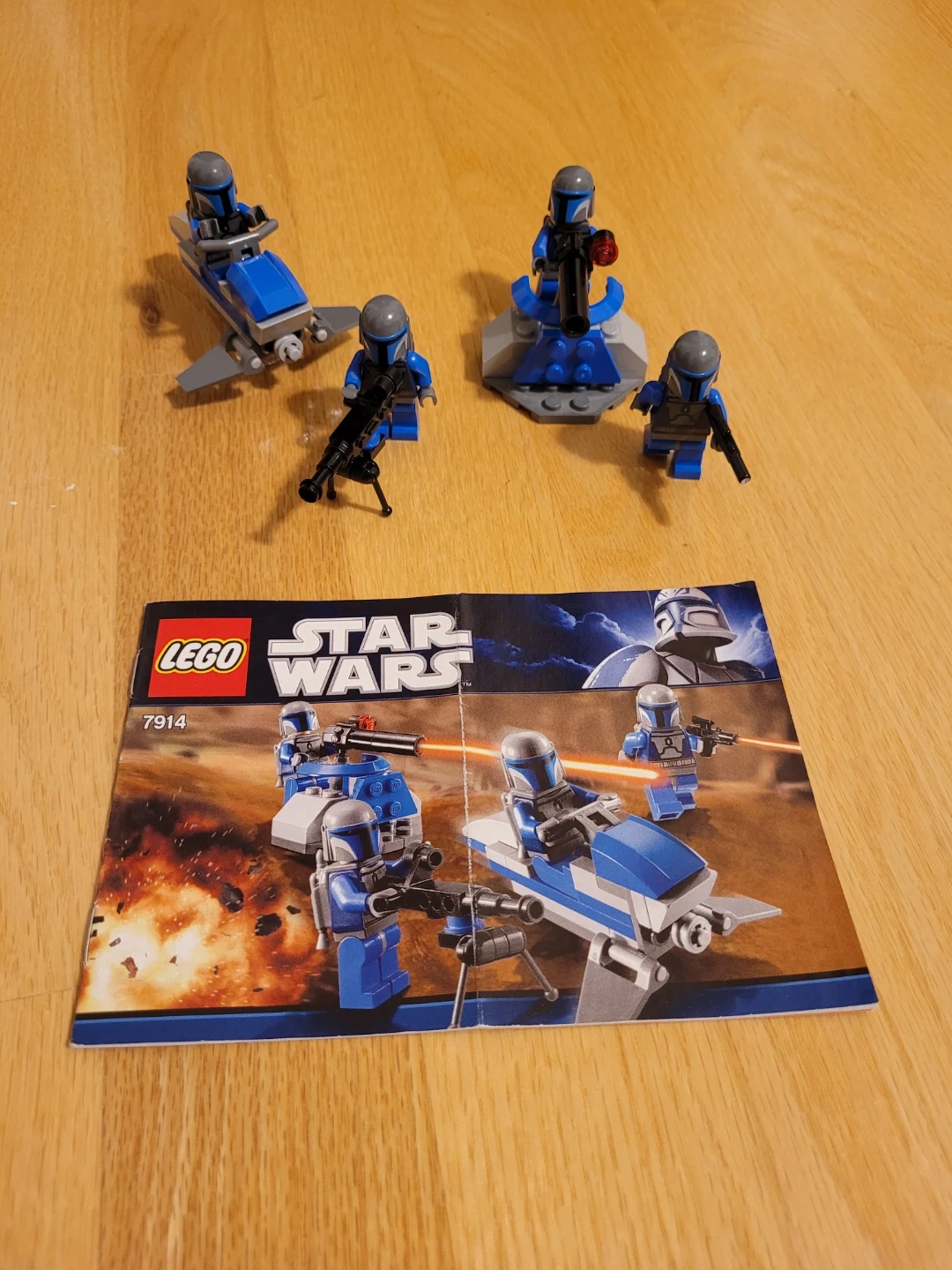 21Selling a LEGO Star Wars Mandalorian Speeder set, number 7914! Includes the speeder, gun emplacement, and four Mandalorian minifigures. Great for Star Wars fans and LEGO collectors alike