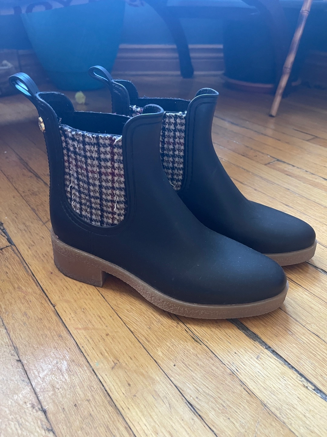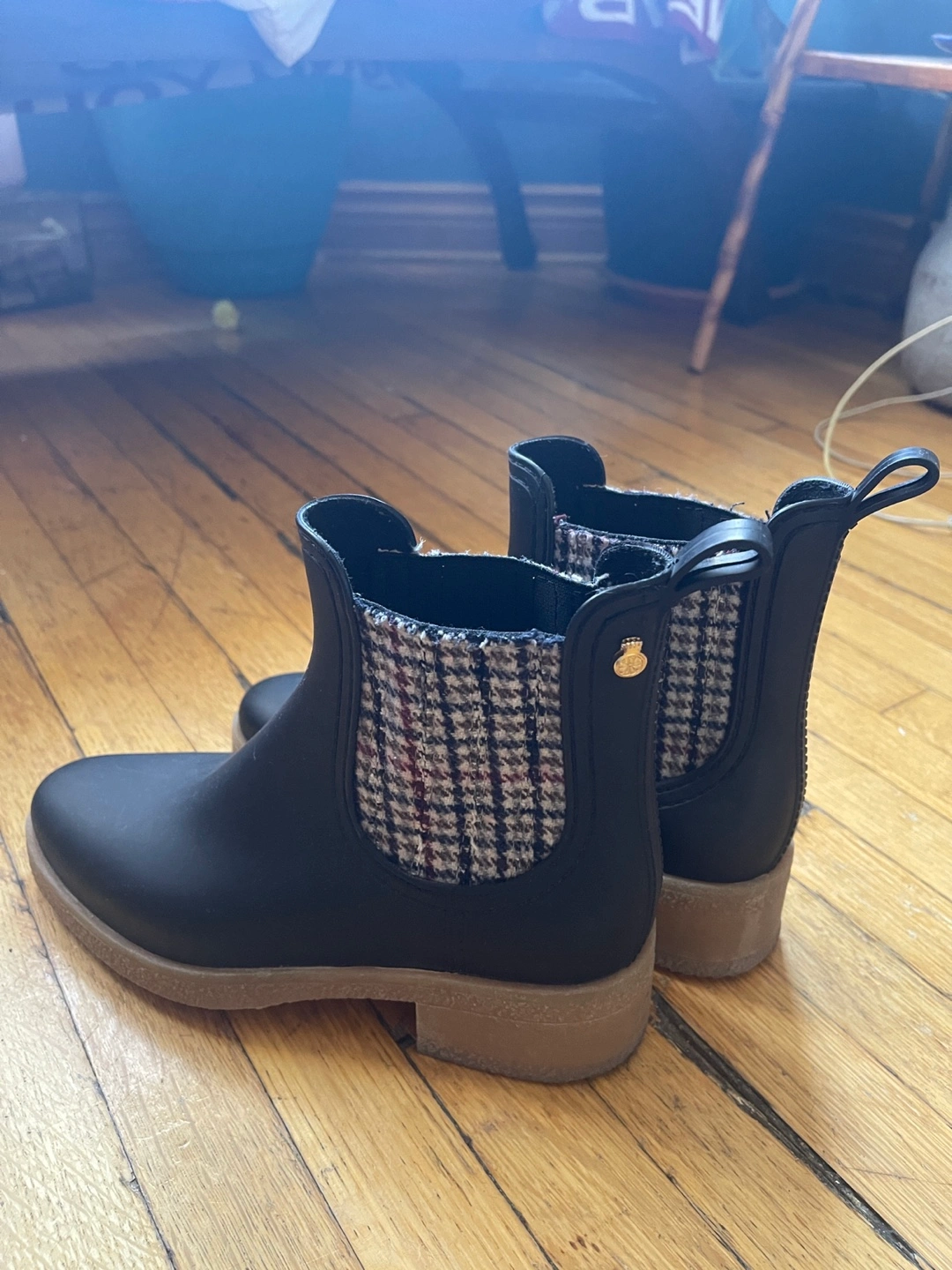 Zara Black Low Heeled Rubber Sole Boots - Size 8