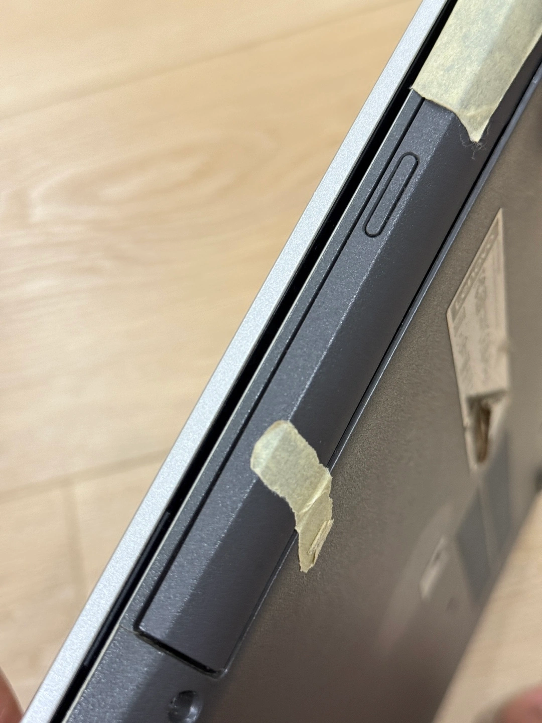- Bottom cover’s screw mount broken near the CD bay—cover sits slightly askew