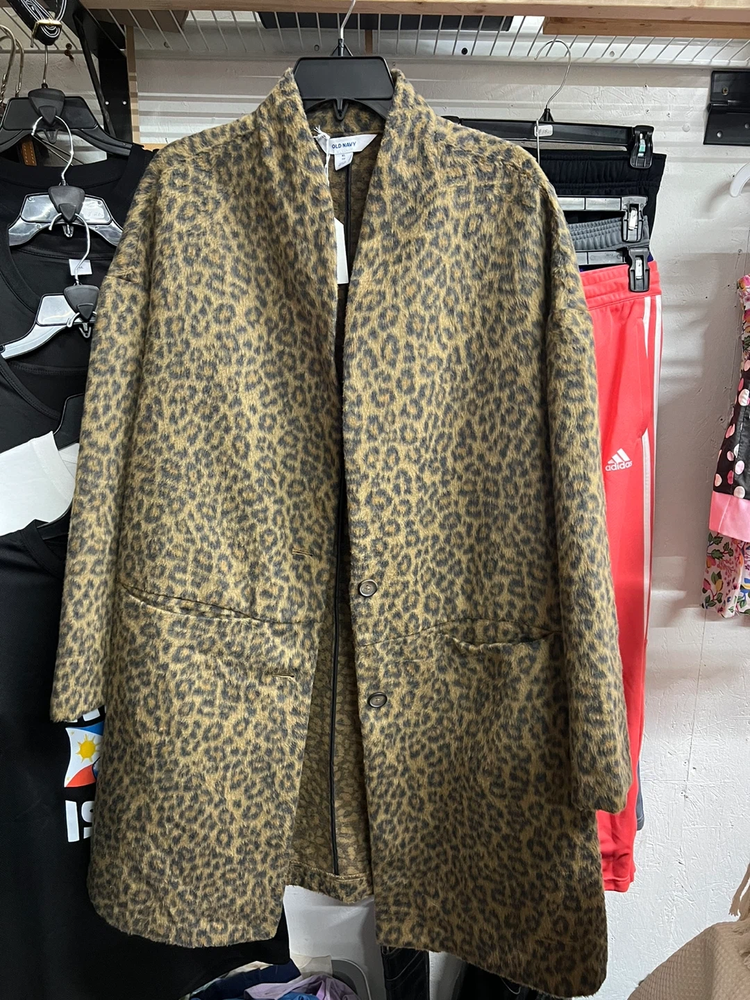 Selling a stylish Old Navy coat with a fun leopard print! It's in great condition and perfect for adding a bit of flair to your wardrobe. It features a button closure and convenient pockets. A great addition to any closet!