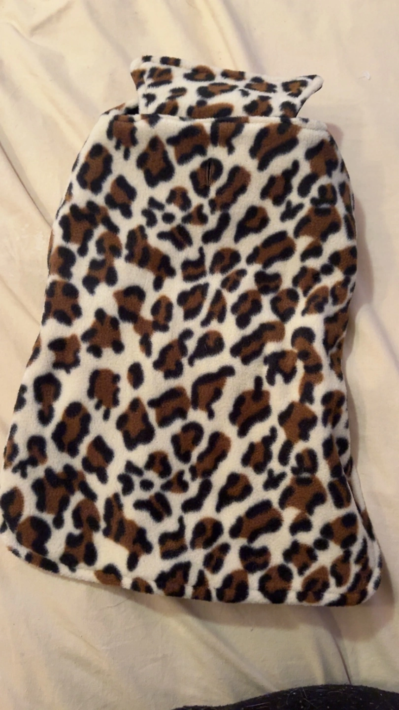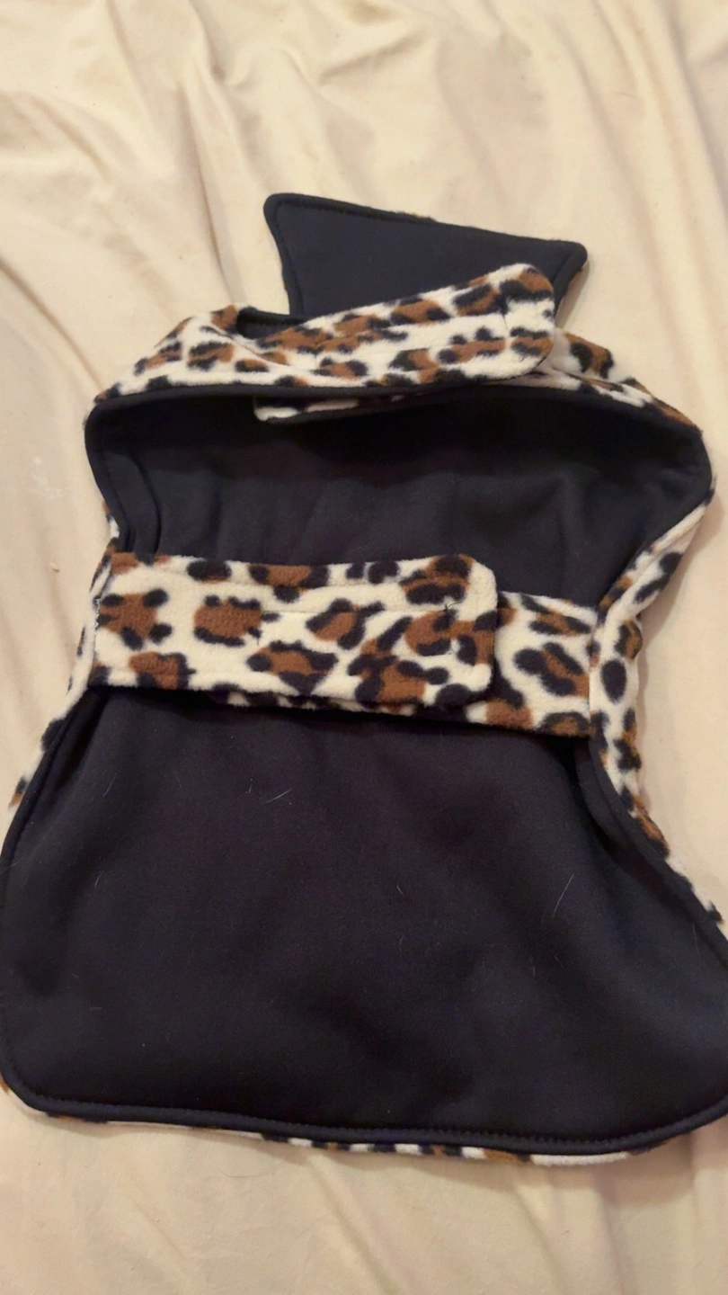 10This is a cute dog coat with a black and leopard print design! It's perfect for keeping your furry friend warm and stylish on walks