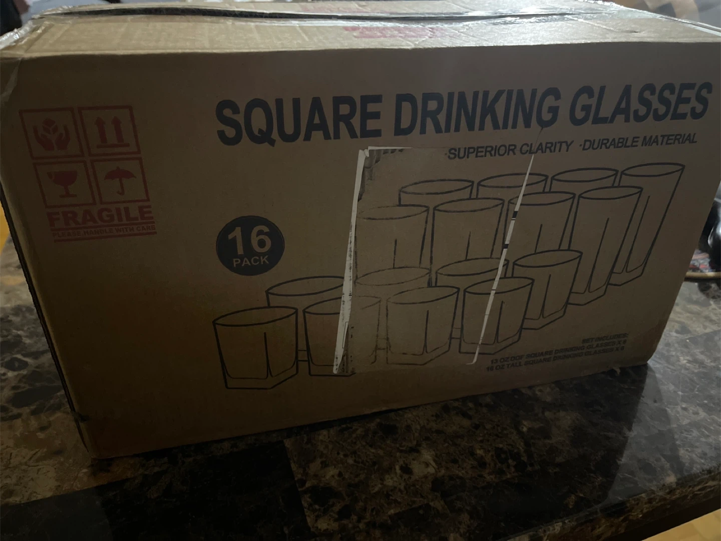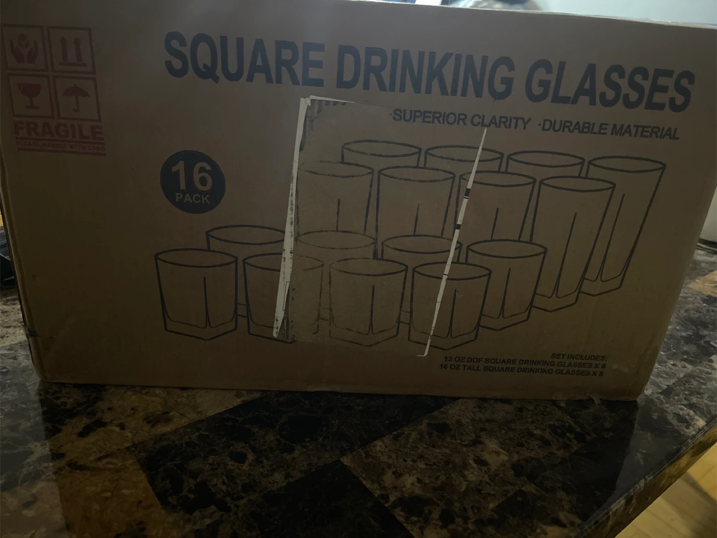 Le'Raze Square Drinking Glasses - 16 Pack - New in Box!