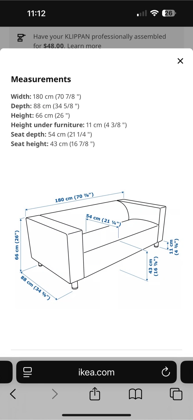Selling a IKEA Klippan loveseat in Vissle gray, perfect for small spaces. This compact sofa features a clean design and durable fabric, ideal for apartments or cozy living rooms. Dimensions are approximately 180 cm (width) x 88 cm (depth) x 66 cm (height). Bought less than one year, barely used, just like new. Specifications: * Brand: IKEA * Model: Klippan * Colour: Vissle Gray * Dimensions: 180 cm x 88 cm x 66 cm