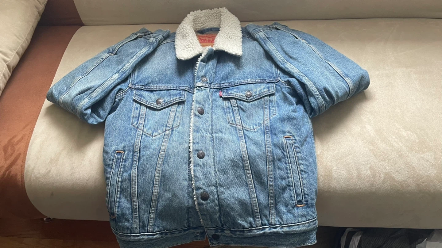 15Levi Strauss & Co. denim jacket with a cozy sherpa lining! The jacket is size XS and features the classic Levi's design with a button-up front and chest pockets. Perfect for adding a touch of warmth and style to your outfit.