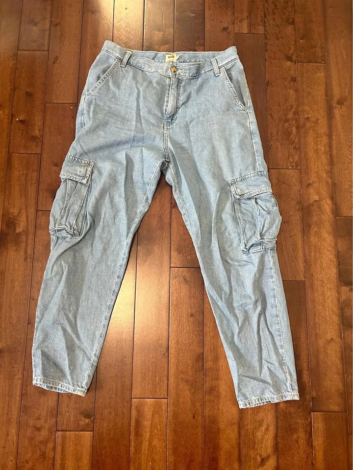 65Levi’s Denim Cargo Pants – Size 28 Trendy and practical! These Levi’s denim cargo pants combine the classic durability of denim with functional cargo pockets for a stylish, everyday look. Condition: Like New Size: 28 Color: Lightwash Material: Denim Features: Cargo pockets, relaxed fit 📍 Pick-up in North York.