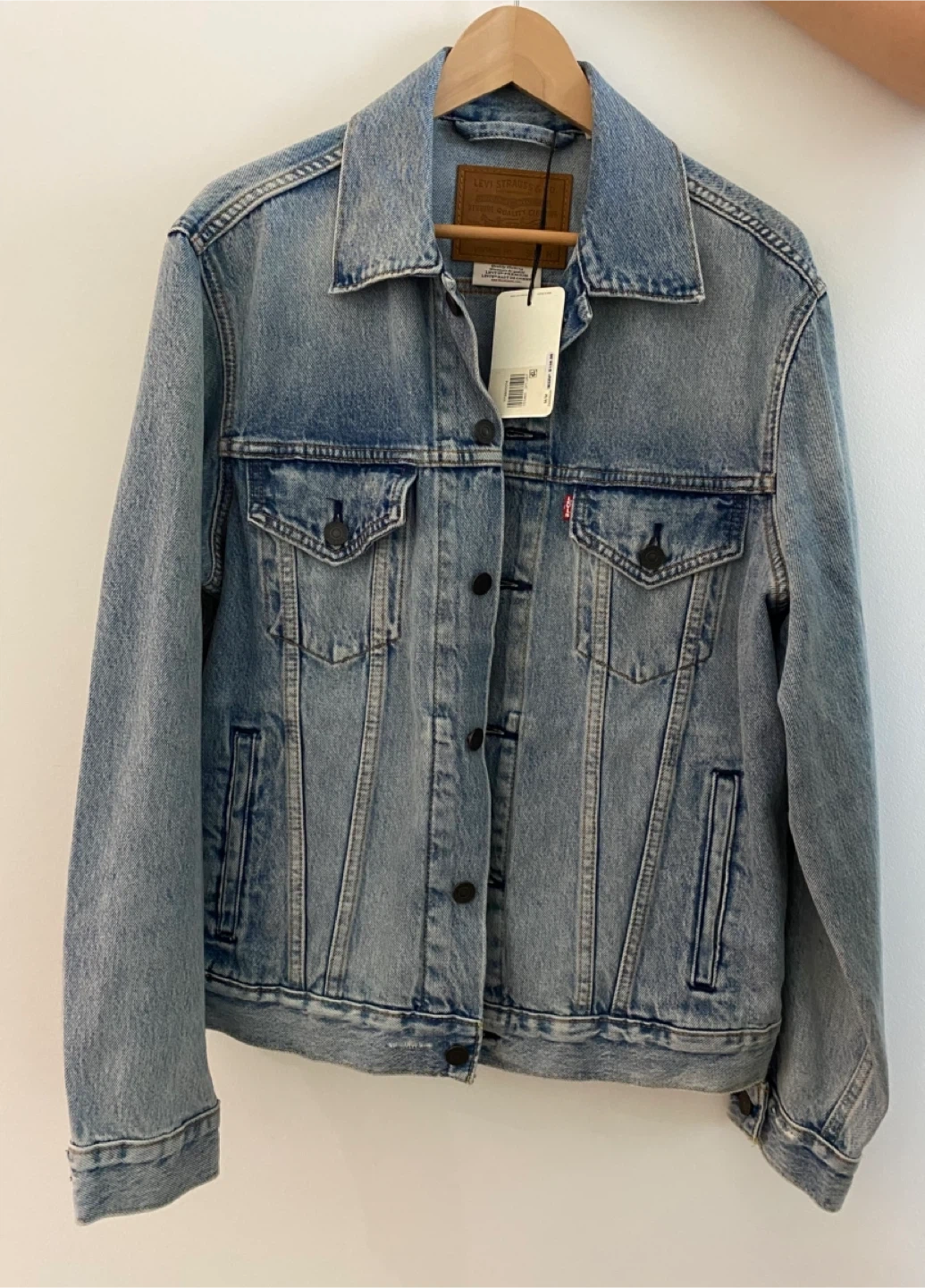 Selling a brand new Levi's denim trucker jacket with tags still attached! This classic jacket is a wardrobe staple and is in perfect condition. It's a light wash denim, perfect for layering. Feel free to ask any questions!