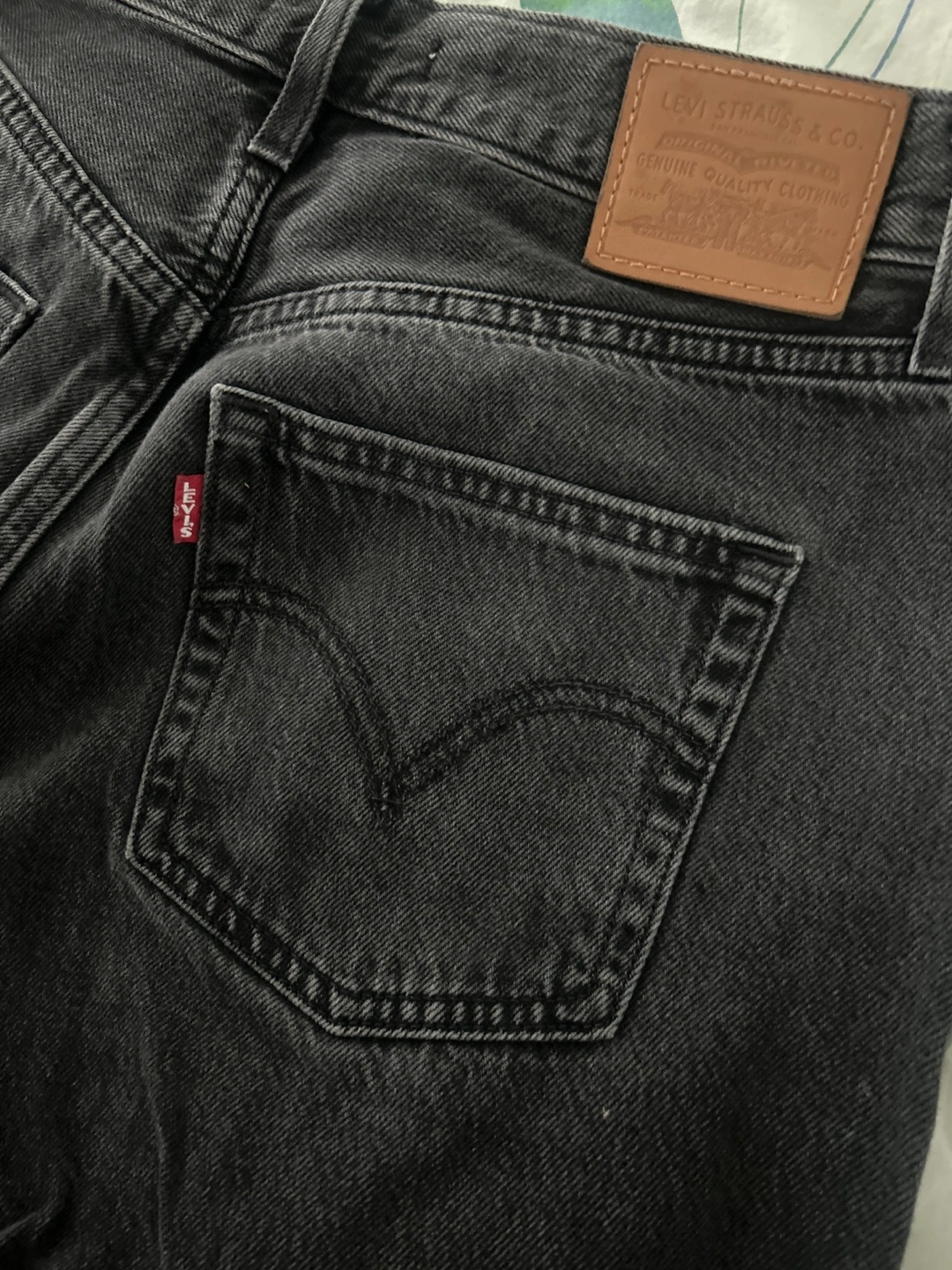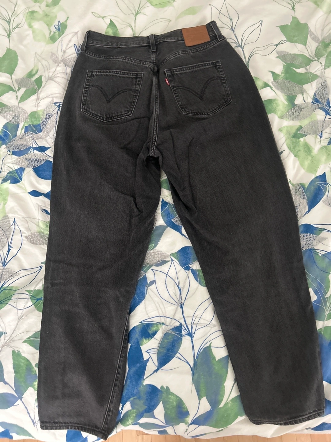 18High waisted, loose taper jeans. Dark wash. Ankle length. Authentic Levi’s. Sell for $99.98 on Levi’s website.