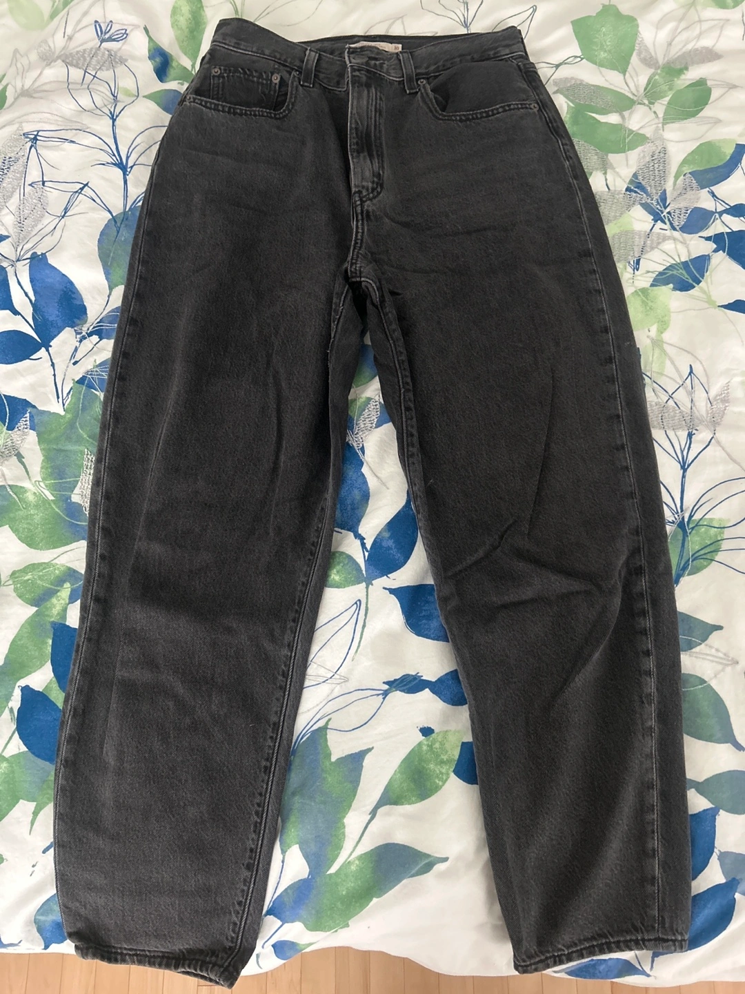 18High waisted, loose taper jeans. Dark wash. Ankle length. Authentic Levi’s. Sell for $99.98 on Levi’s website.