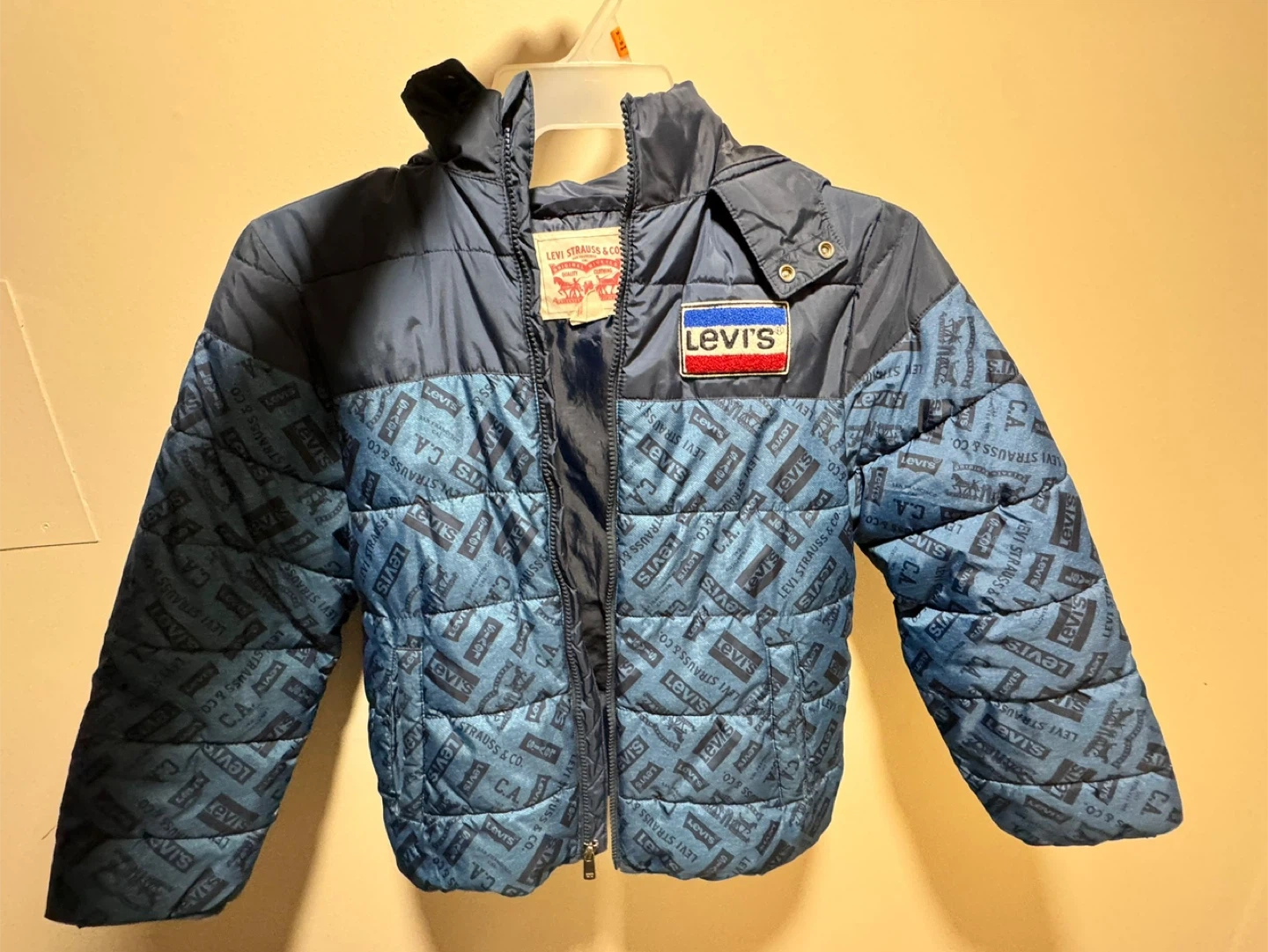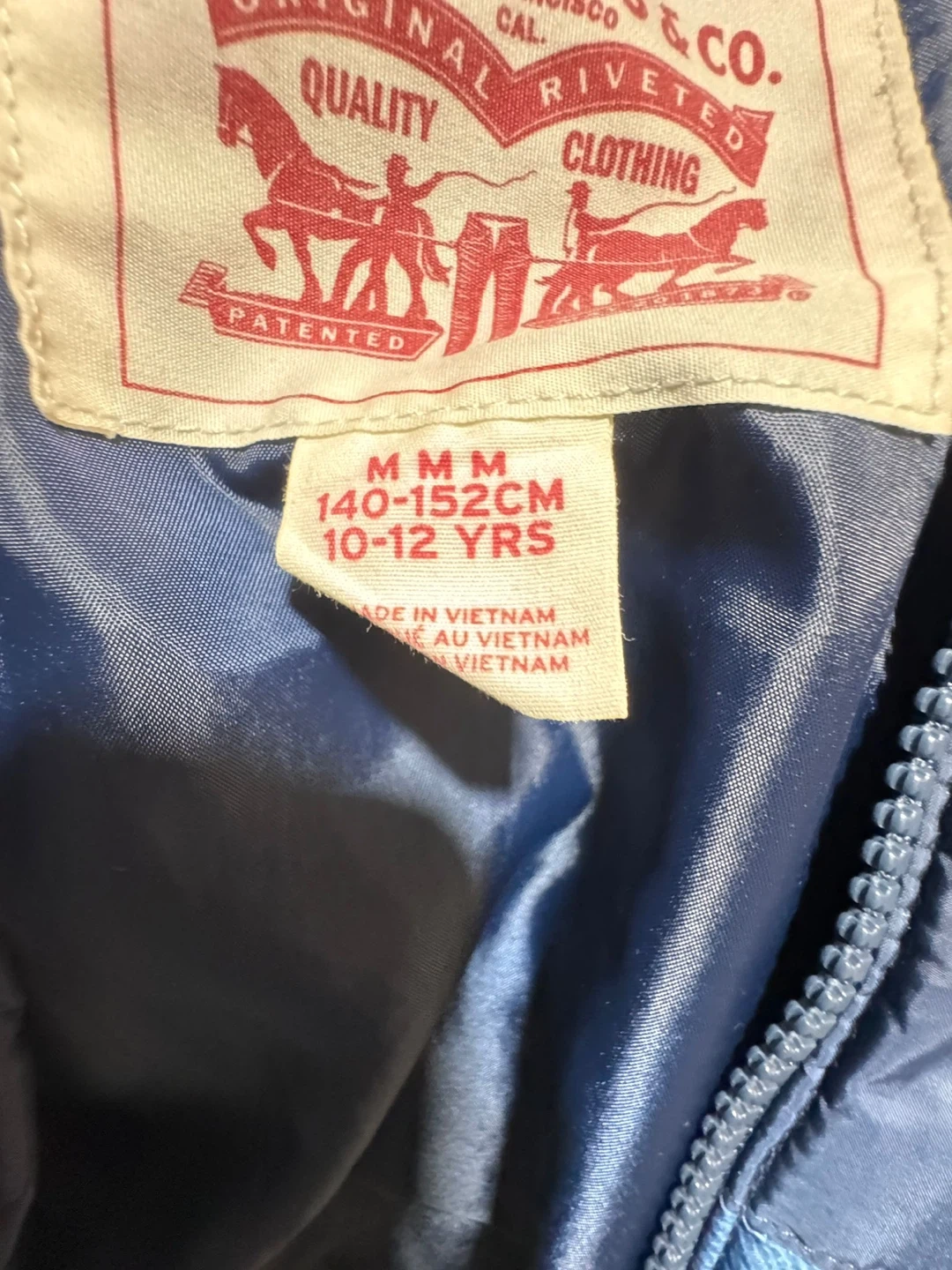 12Here's a Levi's kids puffer jacket in size 10-12 years (140-152 cm). It features a stylish blue colour scheme with Levi's branding. Perfect for keeping your little one warm and fashionable!