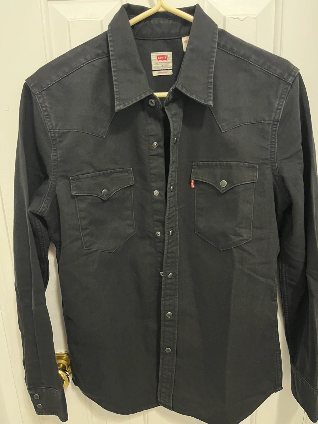 50Levi's Western Shirt in size small! This classic shirt features a stylish design with two chest pockets and a button-down front. Retail for $ 79.00. New shirt. A great addition to any wardrobe! Pick up from Maple Vaughan. Major intersection keele and Rutherford. Near Rutherford go station