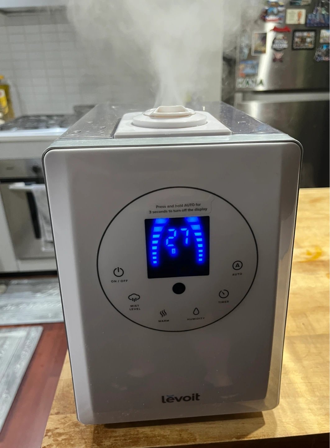 68Selling a Levoit LV600HH hybrid ultrasonic humidifier (6L) — warm & cool mist, remote control features, display, and long run-time. Unit is cleaned and tested — works perfectly. Includes power cord (remote not shown; include if you have it). Great for bedrooms or large rooms (advertised coverage up to ~750 sq ft). No leaks, no smells. Included: humidifier unit, power cord & remote included.