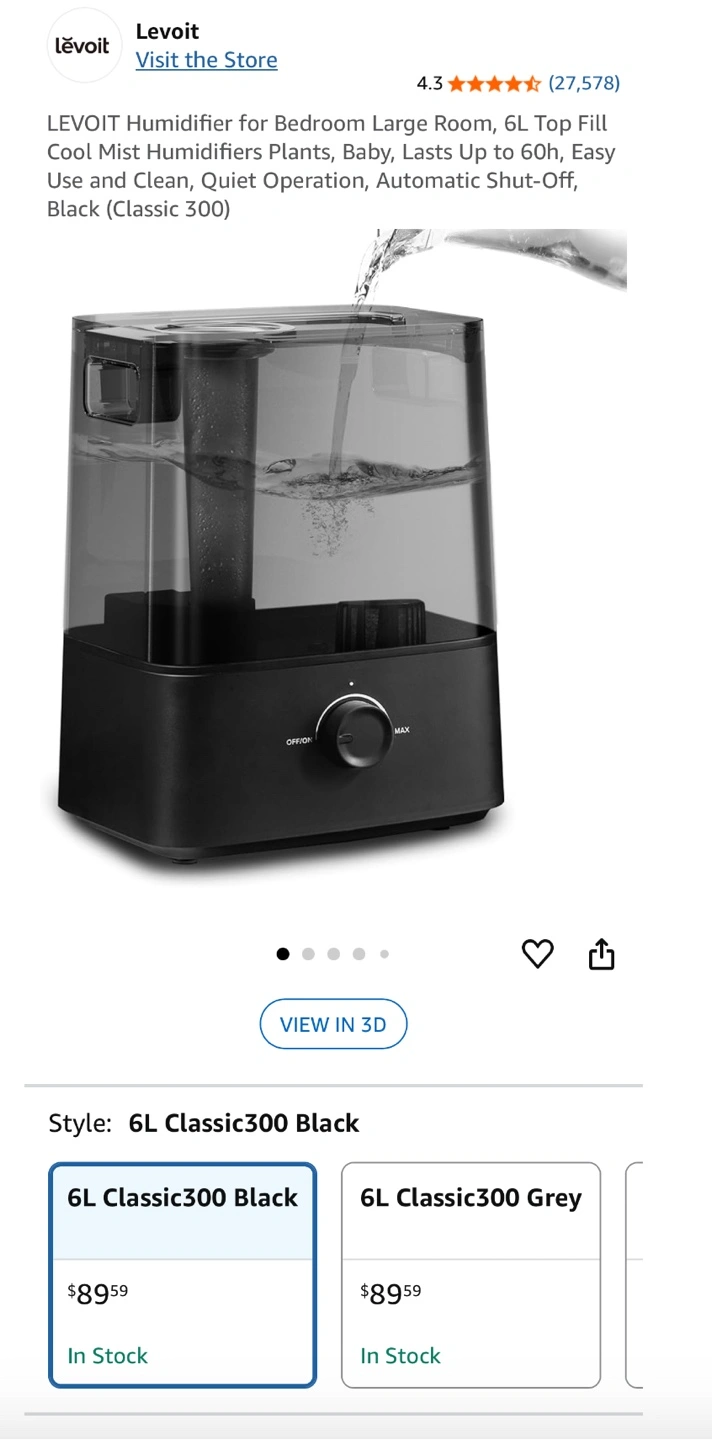 100Selling a Levoit Classic 300 Lite Ultrasonic Cool Mist Humidifier in black! It's in great condition and comes with the box. This humidifier is perfect for bedrooms, large rooms, and even for plants and babies. It has a 6L top fill, lasts up to 60 hours.