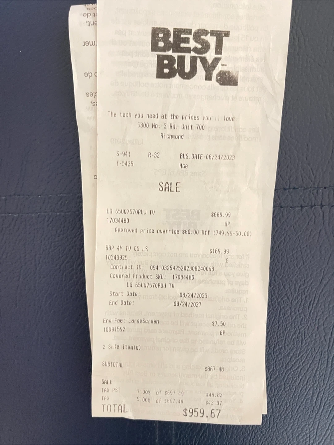 0Selling a like-new LG 65UQ75 65" UHD 4K Smart TV! The box is included. This TV features a Real 4K display with enhanced picture and sound thanks to its α5 AI Processor 4K. It also has ThinQ AI with webOS for an intuitive control of your smart home screen. Originally bought for $959.67 at Best Buy.